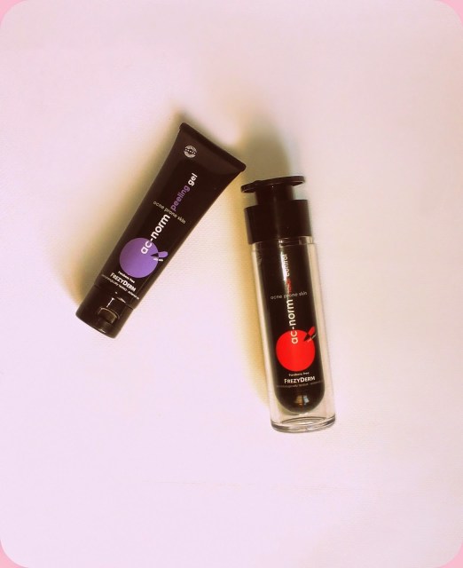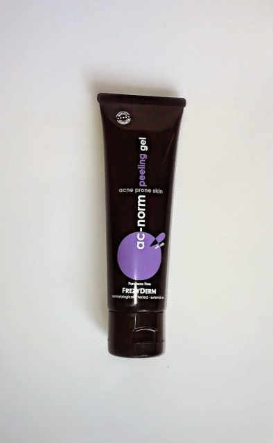 Καταρχήν δοκιμάσαμε το Ac-Norm Peeling Gel. Είναι gel απολέπισης. Είναι για λιπαρό δέρμα, και καταπολεμά την ακμή, το σμήγμα και τους μαύρους πόρους. Έχει κόκκους jojoba οι οποίοι παρόλο που δεν είναι πολύ μικροί, δεν τραυματίζουν καθόλου το δέρμα, δεν αφήνουν κοκκινίλες αλλά καθαρίζουν σε βάθος την επιδερμίδα μας και δίνουν λείο και απαλό αποτέλεσμα.Έχει απαλό άρωμα και αφήνει την αίσθηση φρεσκάδας στο πρόσωπο μας. Αυτό που θεωρούμε εξίσου σημαντικό είναι πως εξισορροπεί την λιπαρότητα της επιδερμίδας μας και έτσι μετά την πλύση, το δέρμα είναι στεγνό, έτοιμο για την ενυδατική μας.