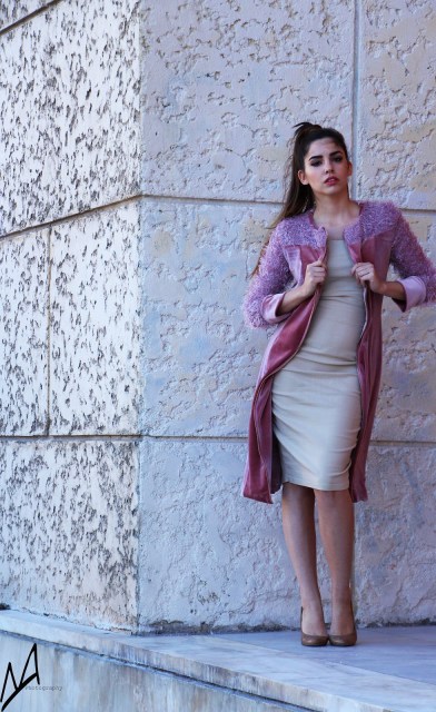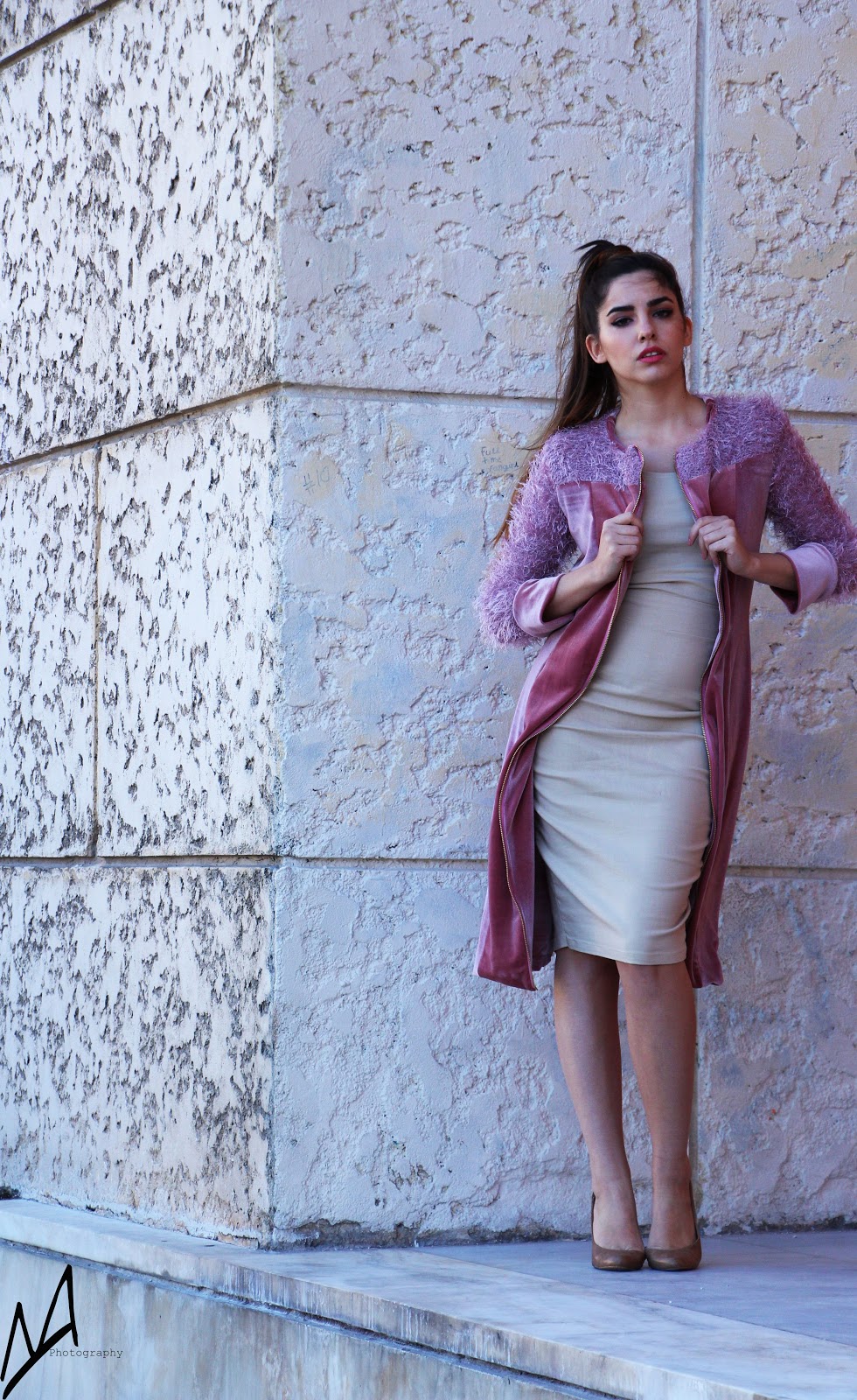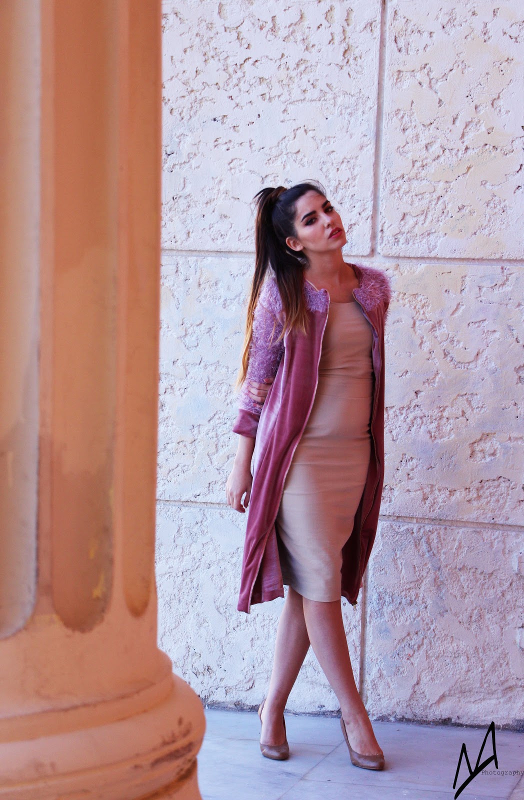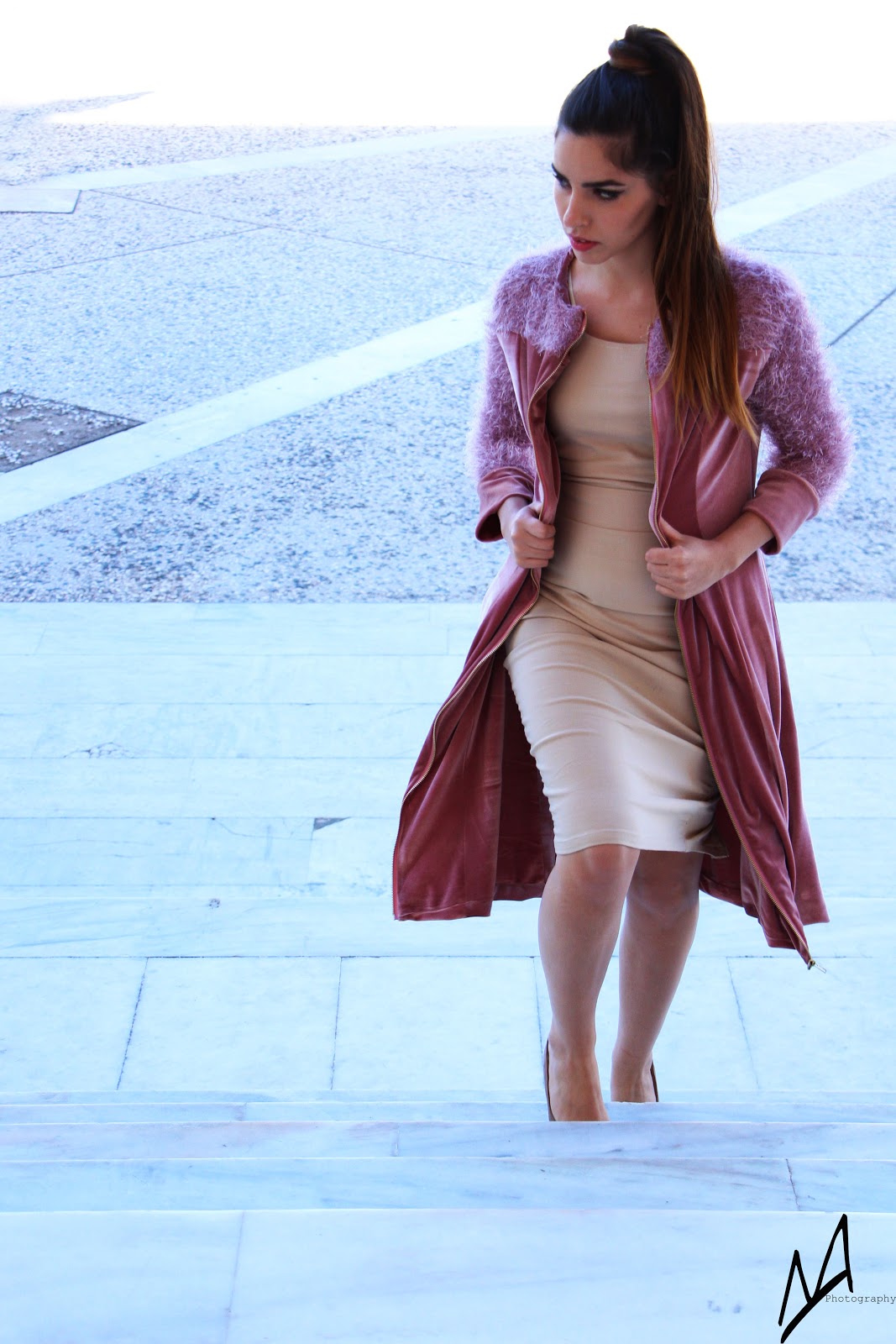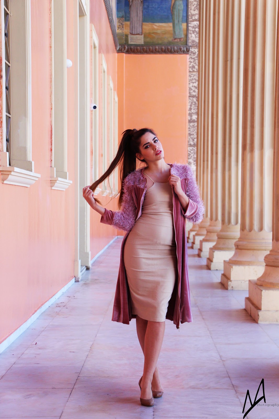 Η τελευταία μας συνεργασία, ήταν η συμμετοχή στη φωτογράφηση αυτής της collection,φορώντας ένα υπέροχο shoulderless βελούδινο φόρεμα συνδυασμένο με nude γόβες και ένα βελούδινο παλτό πάλι στις ίδιες αποχρώσεις με ένα nude midi φόρεμα ,και γόβες σε απόχρωση του καφέ. Η επιλογή των μαλλιών δεν μπορούσε να είναι άλλη από αλογοουρά και ανάλαφρες μπούκλες, και το μακιγιάζ έχει ως βάση το γατίσιο βλέμμα με eyeliner και χείλη σε αποχρώσεις του ροζ.