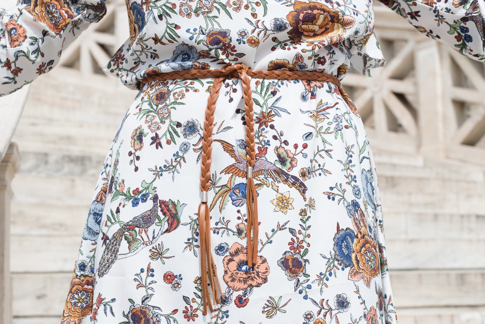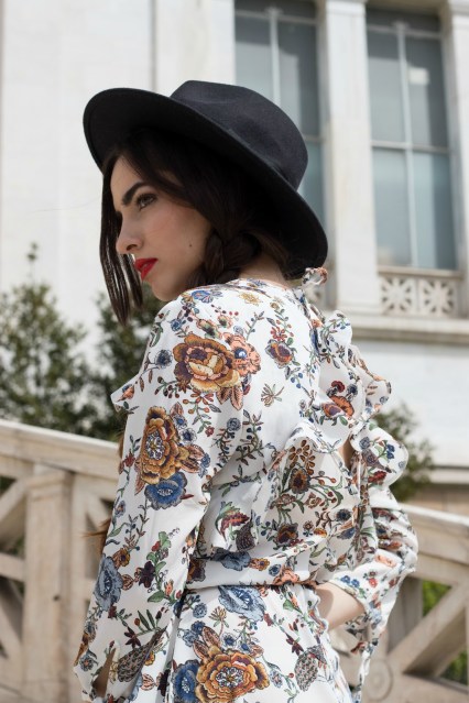 Δεν υπάρχει πιο αντιπροσωπευτικό μοτίβο για την άνοιξη από το floral. Για αυτό και το επιλέγουμε αρκετά συχνά, αφού είναι σαν να φοράμε την εποχή πάνω μας. Δίνει χρώμα στο look, μας φτιάχνει τη διάθεση και μπορούμε να το φορέσουμε είτε σε λεπτομέρειες, είτε ως βασικό κομμάτι του outfit,όπως και σε αυτό το outfit post, που πρωταγωνιστεί σε φόρεμα. Έχει άνοιγμα στην πλάτη, ανάλαφρα μανίκια και γενικά ανάλαφρη γραμμή καταλήγοντας σε βολάν.