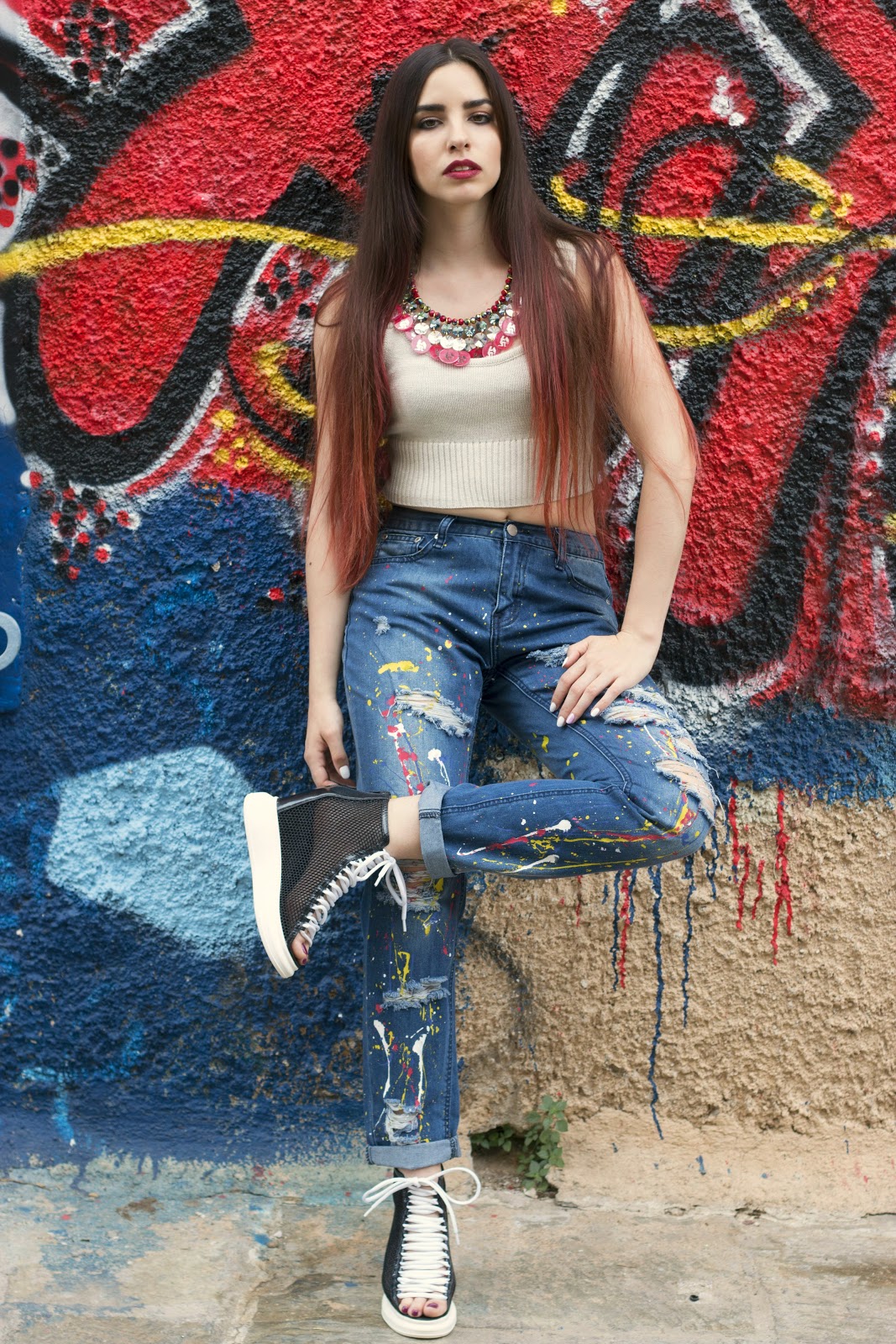 Ακόμα ένα ιδιαίτερο editorial με ένα urban outfit το οποίο αποτελείται από basic κομμάτια τα οποία όμως είναι στην εναλλακτική τους μορφή. Ξεκινώντας από το πιο βασικό, που δεν είναι άλλο από το denim παντελόνι, είναι σε boyfriend γραμμή και έτσι είναι πιο άνετο, με την ιδιαιτερότητα να έχει πολλά διαφορετικά χρώματα, σαν να βάψαμε το σπίτι μας φορώντας αυτό.