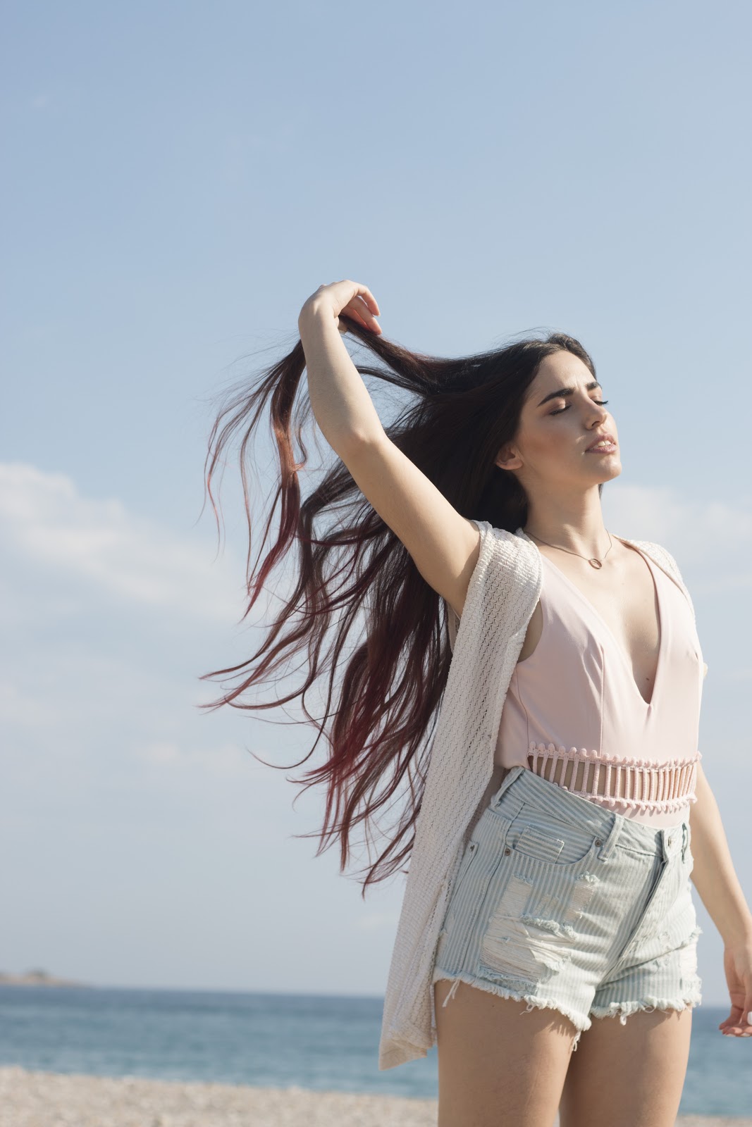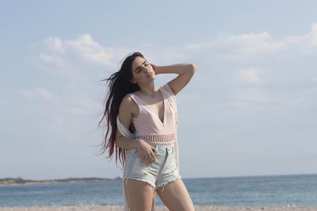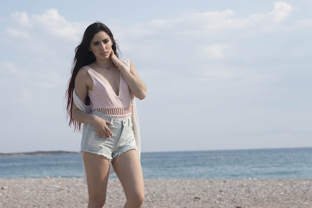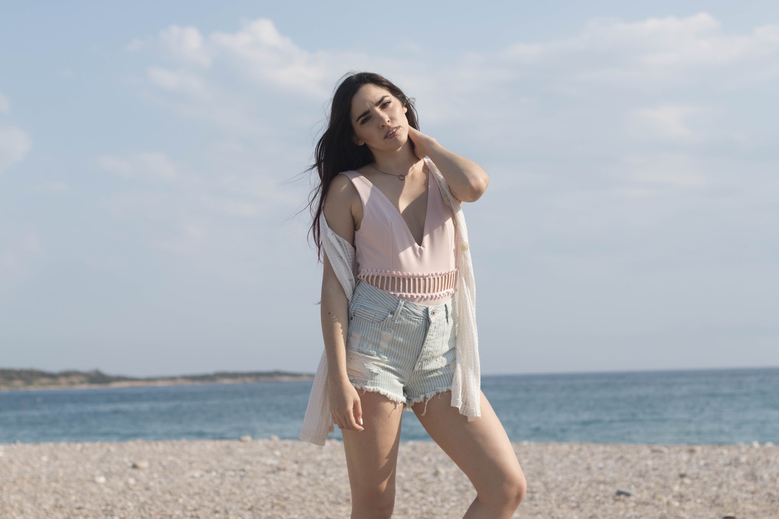 Πρώτο καλοκαιρινό μας editorial και δεν γινόταν να είναι πιο πολύ στο θέμα. Όλες μας μπαίνουμε στο δίλημμα να σκεφτούμε τί μαγιό θα φορέσουμε και φέτος – ίσως είναι απλά μια ευκαιρία να κάνουμε ψώνια βέβαια. Μια τέλεια λύση είναι το ολόσωμο μαγιό το οποίο σε συνδυασμό με το αγαπημένο μας denim shorts γίνεται και το τελειότερο outfit για τις καλοκαιρινές μας διακοπές ή αν επιλέξουμε να πάμε σε κάποιο beach bar γενικά. Το μαγιό είναι εξώπλατο και έχει άνοιγμα και στο στήθος και είναι σε pastel απόχρωση του ροζ, ενώ ταίριαξε τέλεια με το ριγέ ψηλόμεσο denim shorts.Για να ολοκληρωθεί το look,προσθέσαμε και ένα αμάνικο λευκό κιμονό για να δώσει περισσότερη κίνηση και ακόμα πιο summery διάθεση.