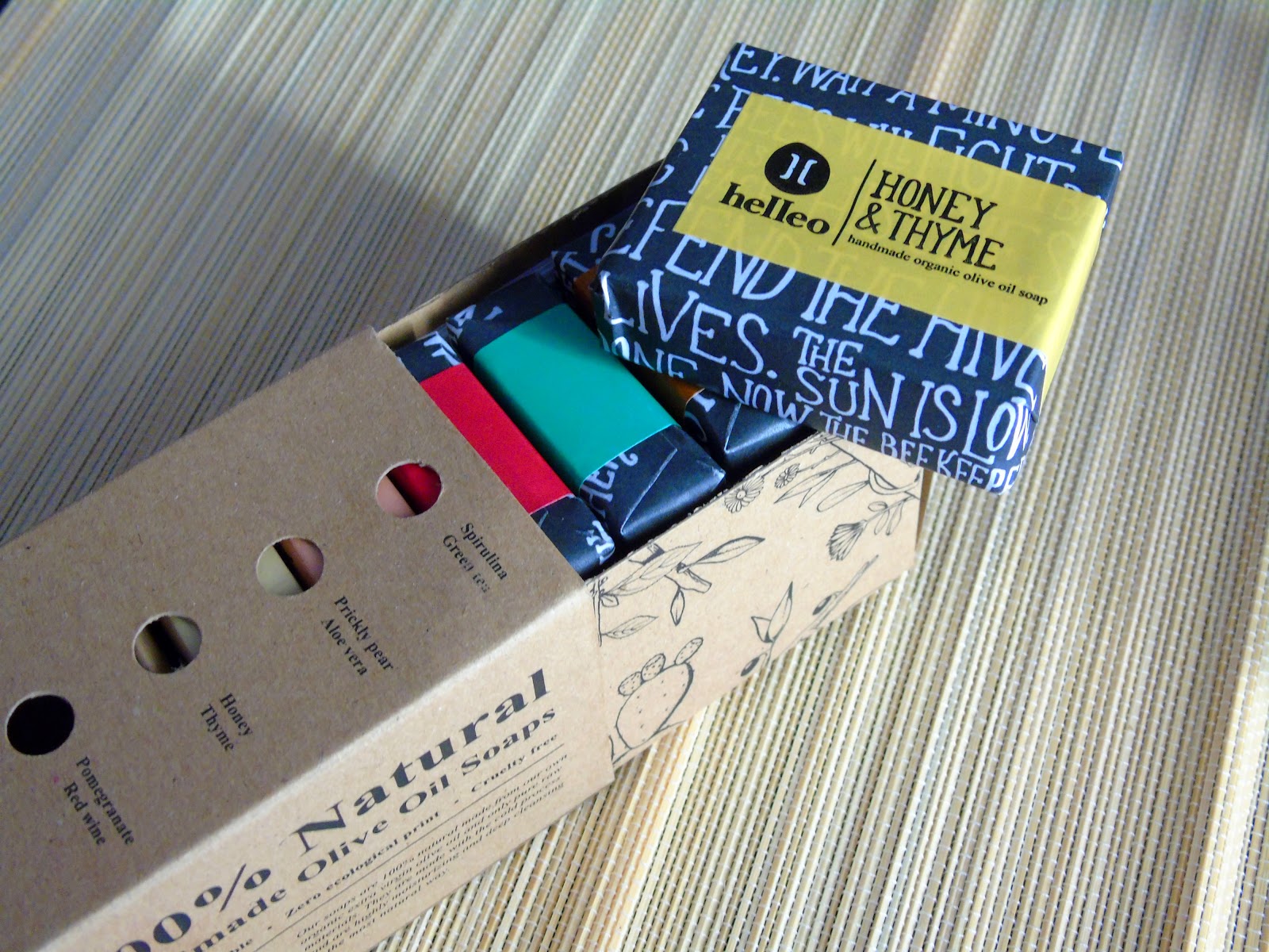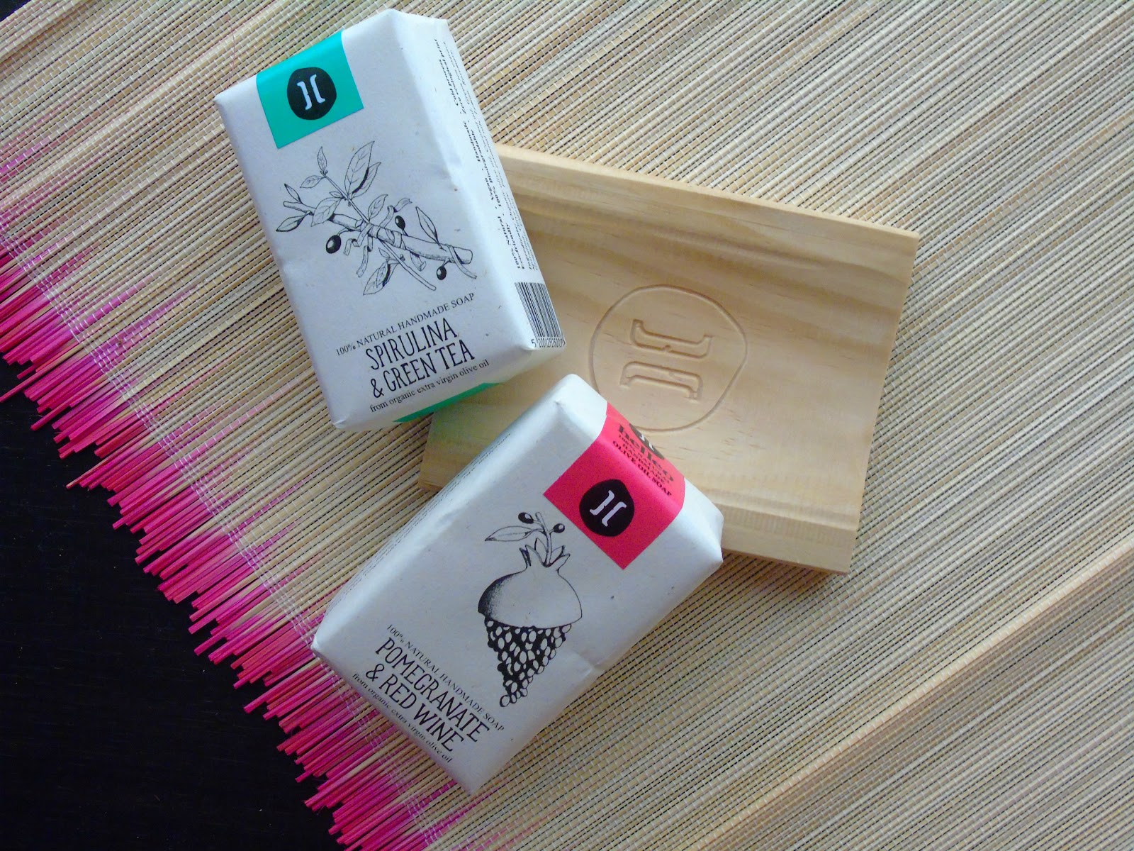Πιο συγκεκριμένα, το πακέτο μας περιείχε δύο σαπούνια σε μεγάλο μέγεθος με μια ξεχωριστή ξύλινη σαπουνοθήκη η οποία έχει την ιδιότητα να απορροφά την υγρασία από το σαπούνι και έτσι αυτό να ξηραίνεται μετά από την χρήση του, και ένα kit με 6 σαπούνια σε travel size για να μπορούμε να τα έχουμε και στις διακοπές μας.