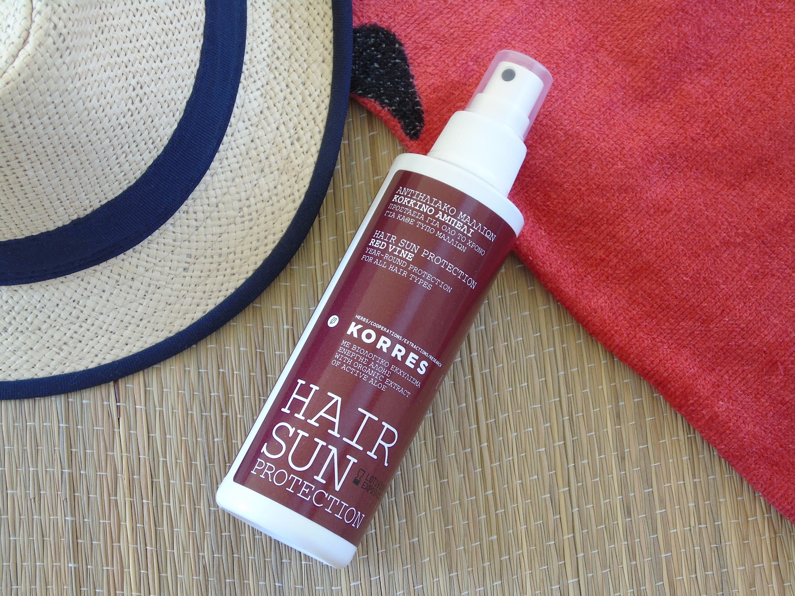 Εμείς για να τα προστατέψουμε αλλά και να φροντίσουμε να διαρκέσει περισσότερο το χρώμα τους χωρίς να ξεθωριάσει από τον ήλιο και τη θάλασσα χρησιμοποιούμε το αντηλιακό μαλλιών του Κorres με κόκκινο αμπέλι.