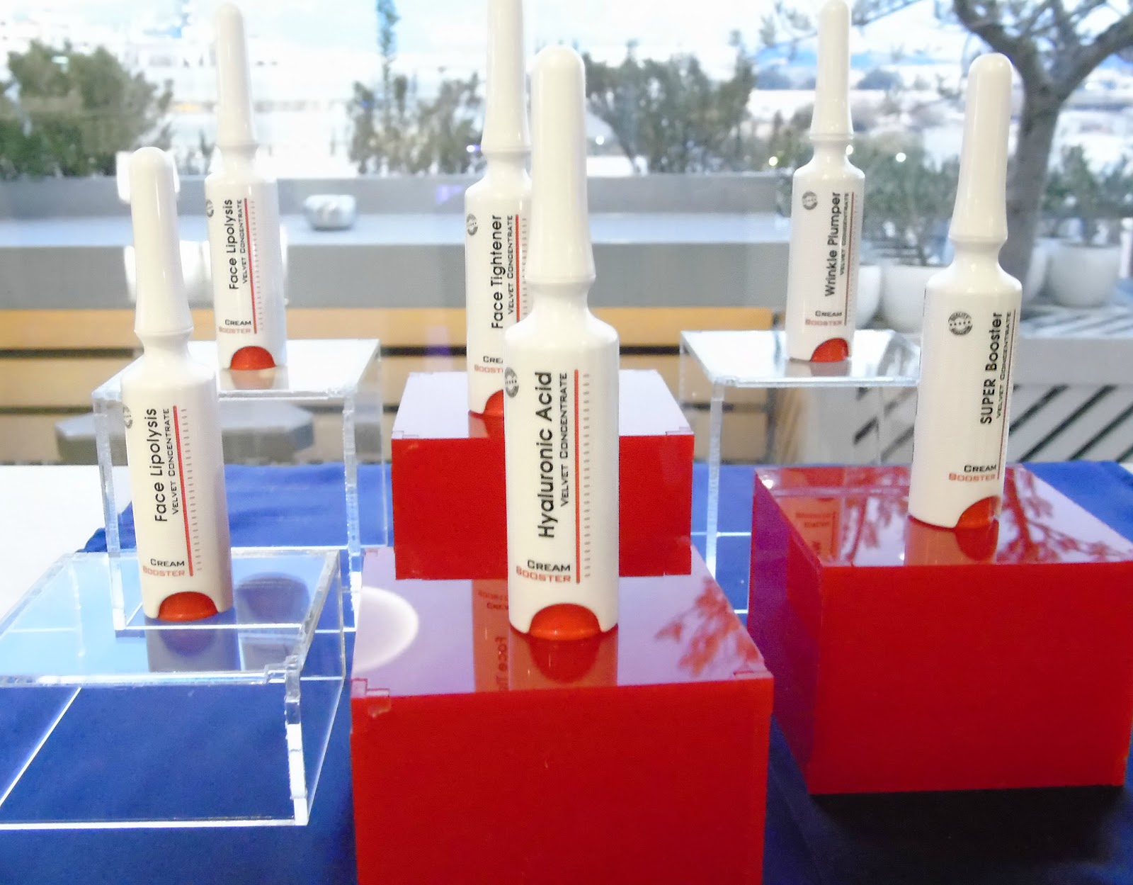 Φεύγοντας πήραμε και ένα goody bag με 3 Cream Boosters ,τα οποία υπάρχουν με διάφορα συστατικά όπως υαλουρονικό, πεπτίδια και κολλαγόνο και εφαρμόζονται πριν από την ενυδατική μας κρέμα. Αυτό που μας εντυπωσίασε είναι το γεγονός ότι μπορούν να χρησιμοποιηθούν συνδυαστικά με οποιαδήποτε ενυδατική κρέμα, ακόμα και άλλου brand.Σαν υφή είναι πολύ ενυδατικά και έχουν τέλειο άρωμα, και ακόμα και από την πρώτη χρήση τους, το πρόσωπο μας το επόμενο πρωί είναι πιο λαμπερό, ενυδατωμένο και ξεκούραστο. Χρησιμοποιούνται για δέκα μέρες σαν θεραπεία ,χρονικό διάστημα αρκετό για να ανανεωθεί η όψη της επιδερμίδας μας.
