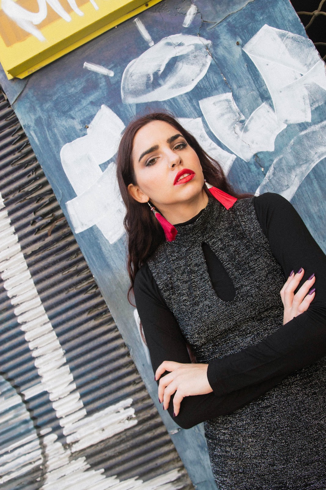 Θα μπορούσα να φορέσω ένα καλσόν ,όμως επειδή δε τα συμπαθώ και πολύ, και τα αποφεύγω με την πρώτη ευκαιρία, προτίμησα να φορέσω τα suede ankle boots με ένα μαύρο καλτσάκι που βγαίνει πιο πάνω από τα μποτάκια. Το μόνο αξεσουάρ που θέλησα να προσθέσω είναι ένα ζευγάρι κατακόκκινα tassel σκουλαρίκια, που δίνουν κίνηση και χρώμα στο look και το κάνουν ακόμα πιο festive.