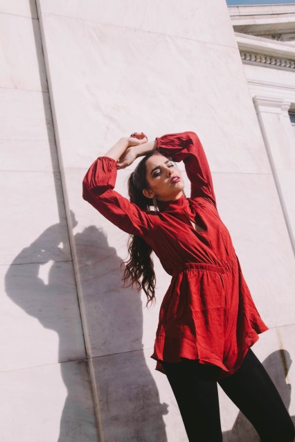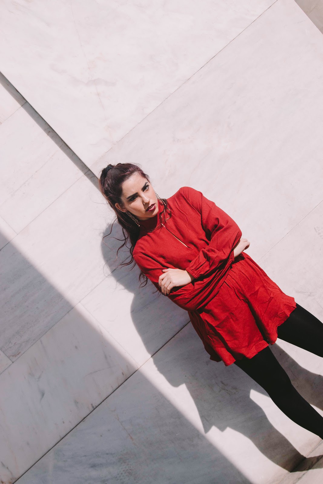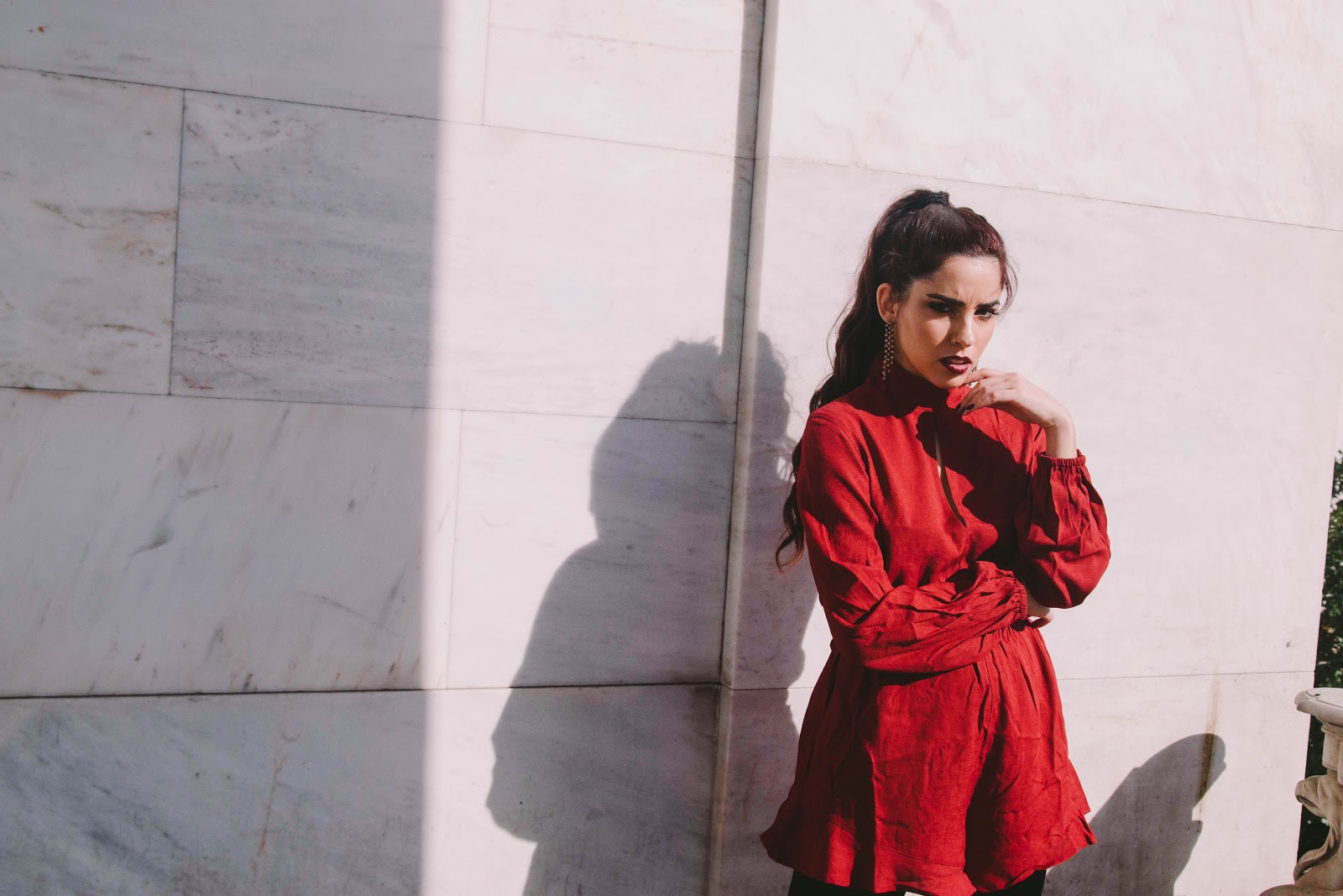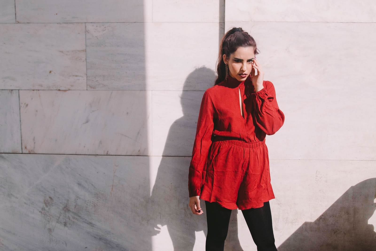 Πρώτο outfit post στο blog, και είναι σίγουρα ένα look που αν το συνδυάσω με ένα ζεστό πανωφόρι, δεν πρόκειται να κρυώσω παρά τα κρύα βράδια του Γενάρη. Γενικά, προτιμώ να επιλέγω ρούχα που αναδεικνύουν την σιλουέτα μου και την κολακεύουν χωρίς όμως να αφήνουν εκτεθειμένο πολύ από το δέρμα μου. Ένα ολόσωμο σορτς, στο χρώμα του κρασιού, με λεπτομέρειες που θυμίζουν βικτωριανή εποχή όπως τα φουσκωτά μανίκια και ο κλειστός γιακάς με ένα ελαφρύ ντεκολτέ.