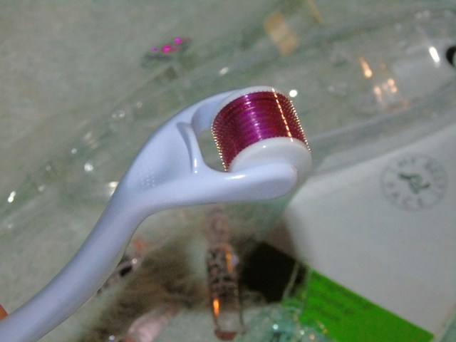 Στη συνέχεια, έχουμε το Derma roller,το οποίο ανυπομονούσα να δοκιμάσω και να εντάξω στην ρουτίνα περιποίησης μου. Είναι ένα επαναστατικό εργαλείο με μικροακίδες, το οποίο δημιουργεί διατρήσεις στο δέρμα χωρίς να το καταπονεί, ώστε να ενεργοποιήσει την παραγωγή ελαστίνης και κολλαγόνου, να απορροφηθεί καλύτερα το όποιο προϊόν χρησιμοποιώ και να διατηρήσει την επιδερμίδα μου σφριγηλή και λαμπερή. Λειαίνει τις λεπτές ρυτίδες και γραμμές έκφρασης, αλλά και τα σημάδια όπως αυτά της ακμής, βελτιώνοντας και την υφή και όψη του προσώπου.