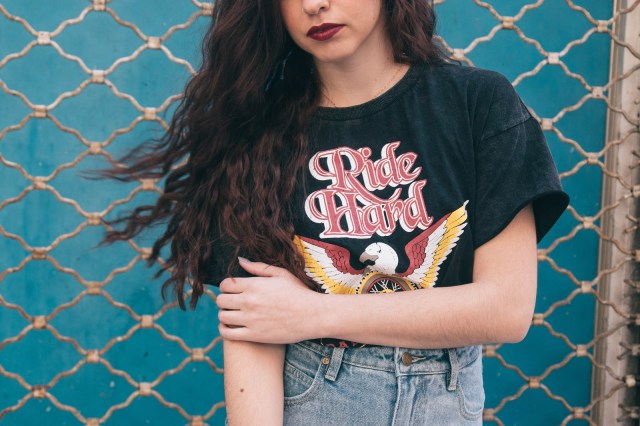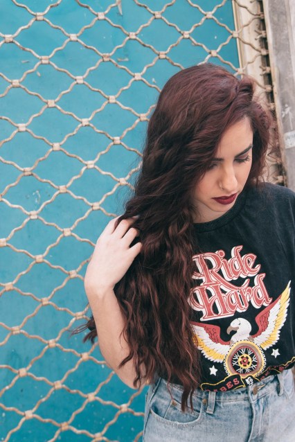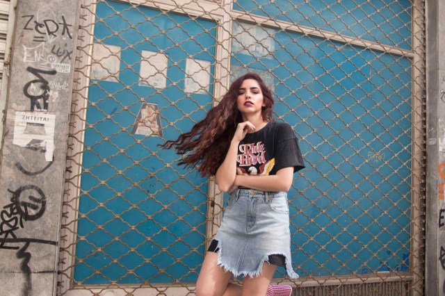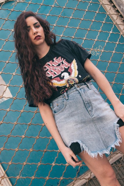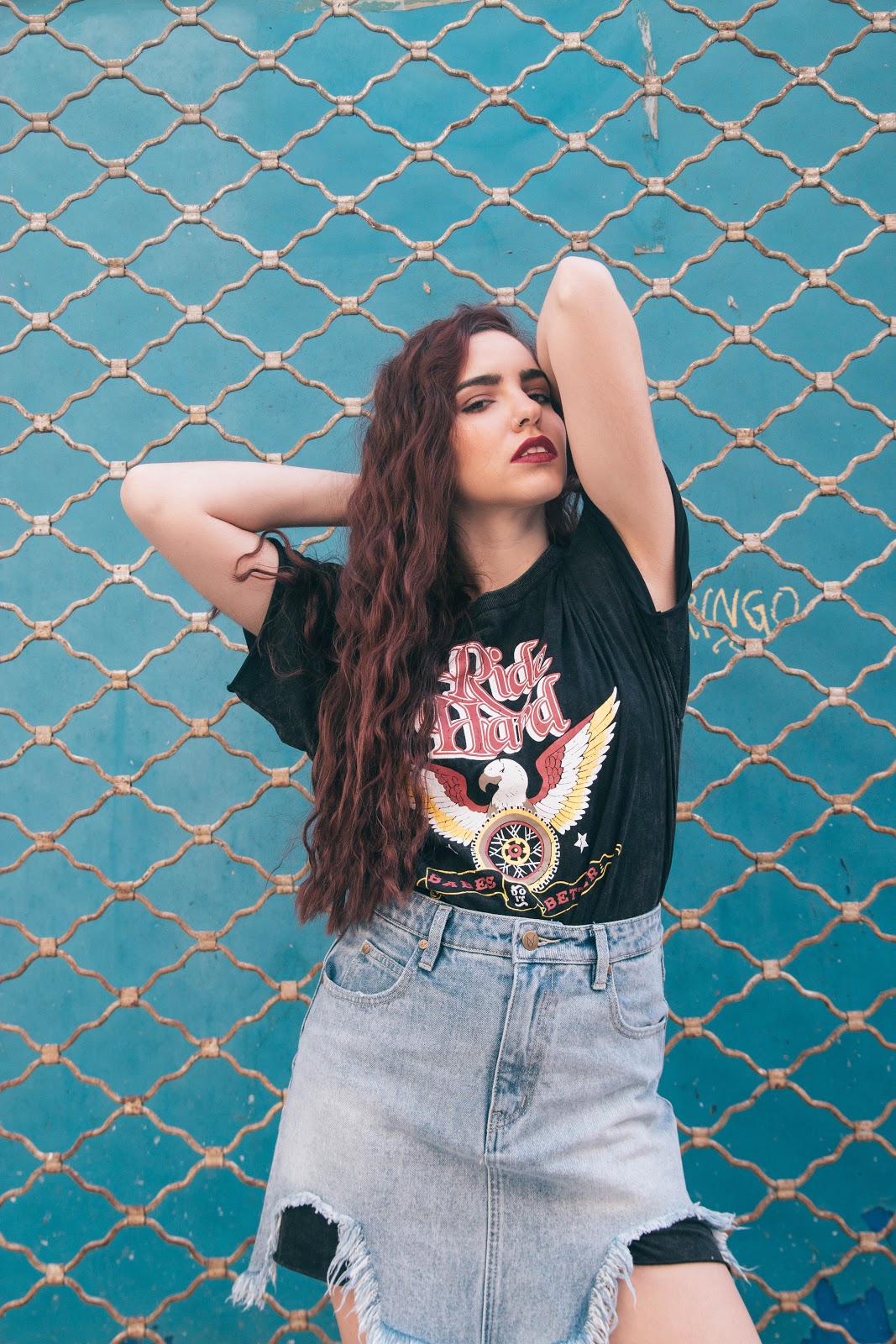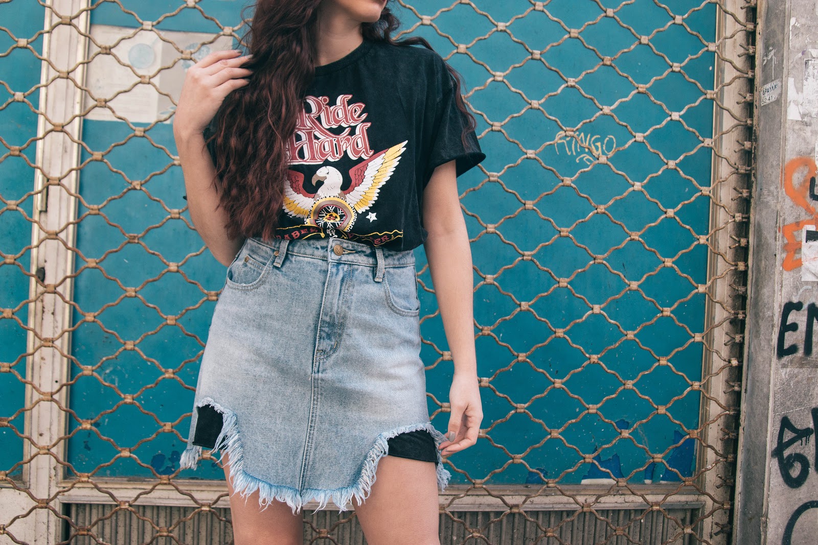 Το denim ήταν και συνεχίζει να είναι και σήμερα βασικό piece της ντουλάπας, και ειδικά όταν είναι highwaisted. Επιλέγοντας μια denim φούστα που δείχνει φθαρμένη, την ταίριαξα με ένα tee dress, το οποίο καλύπτει τα κενά που δημιουργεί η φούστα και είναι και μια μορφή layering, με το σημαντικότερο σαν αποτέλεσμα: να νιώθω άνετα αλλά και stylish.