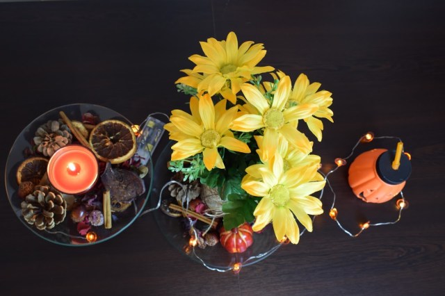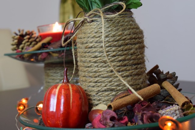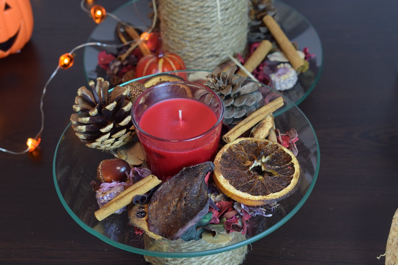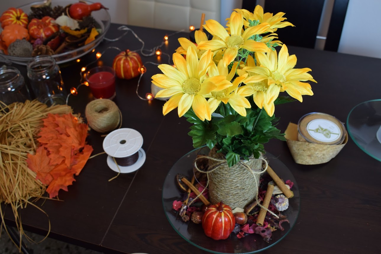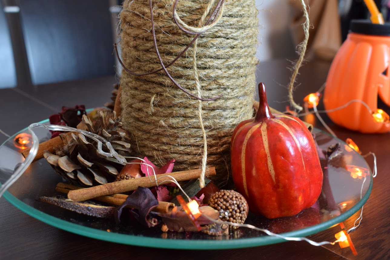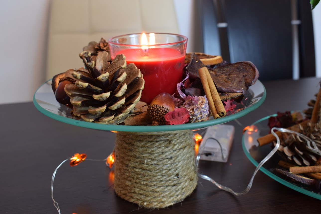 Κοιτούσα λοιπόν την τραπεζαρία μου τις προάλλες και κάτι δεν μου άρεσε. Ήθελα κάτι να αλλάξω. Να φτιάξω ένα καινούριο και πιo φθινοπωρινό/χειμερινό διακοσμητικό. Δεν μπορούσα να κατέβω για ψώνια(καλύτερα γιατί όταν βγαίνω χωρίς να ξέρω τί ακριβώς θέλω να αγοράσω γίνομαι κομματάκι σπάταλη)κι έτσι σκέφτηκα να φτιάξω κάτι με υλικά που είχα ήδη στο σπίτι.