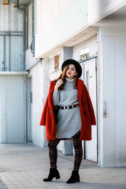 Επειδή οι κρύες μέρες δεν έχουν τελειώσει όσο και να μας ξεγελάνε αυτές οι λίγες ηλιόλουστες μέρες του χειμώνα, η καλύτερη λύση είναι το layering. Έτσι επιλέξαμε να φορέσουμε ένα πλεκτό φόρεμα σε ανοιχτό γκρι χρώμα, σε φαρδιά γραμμή και ζιβάγκο ώστε να γλυτώσουμε το κρύο, ενώ για να τονίσουμε τη σιλουέτα που χάνεται μέσα στο πλεκτό, φορέσαμε μια ζώνη με διπλές αγκράφες για να το γεμίσει.