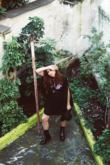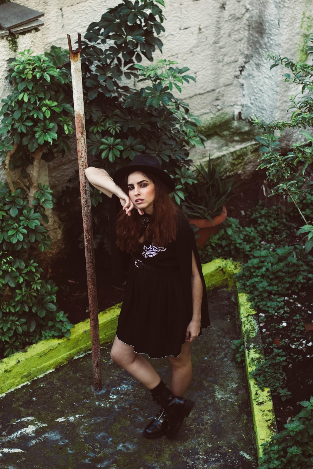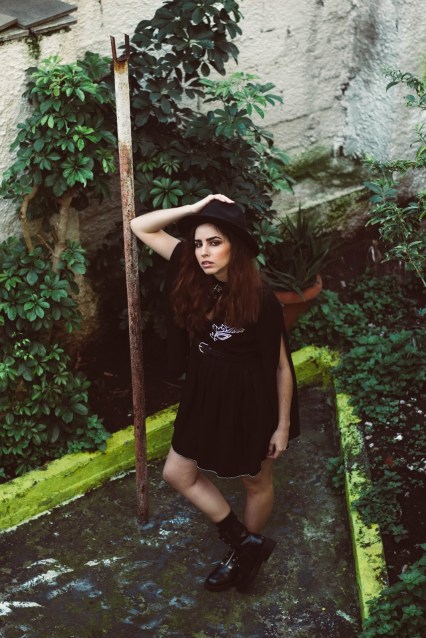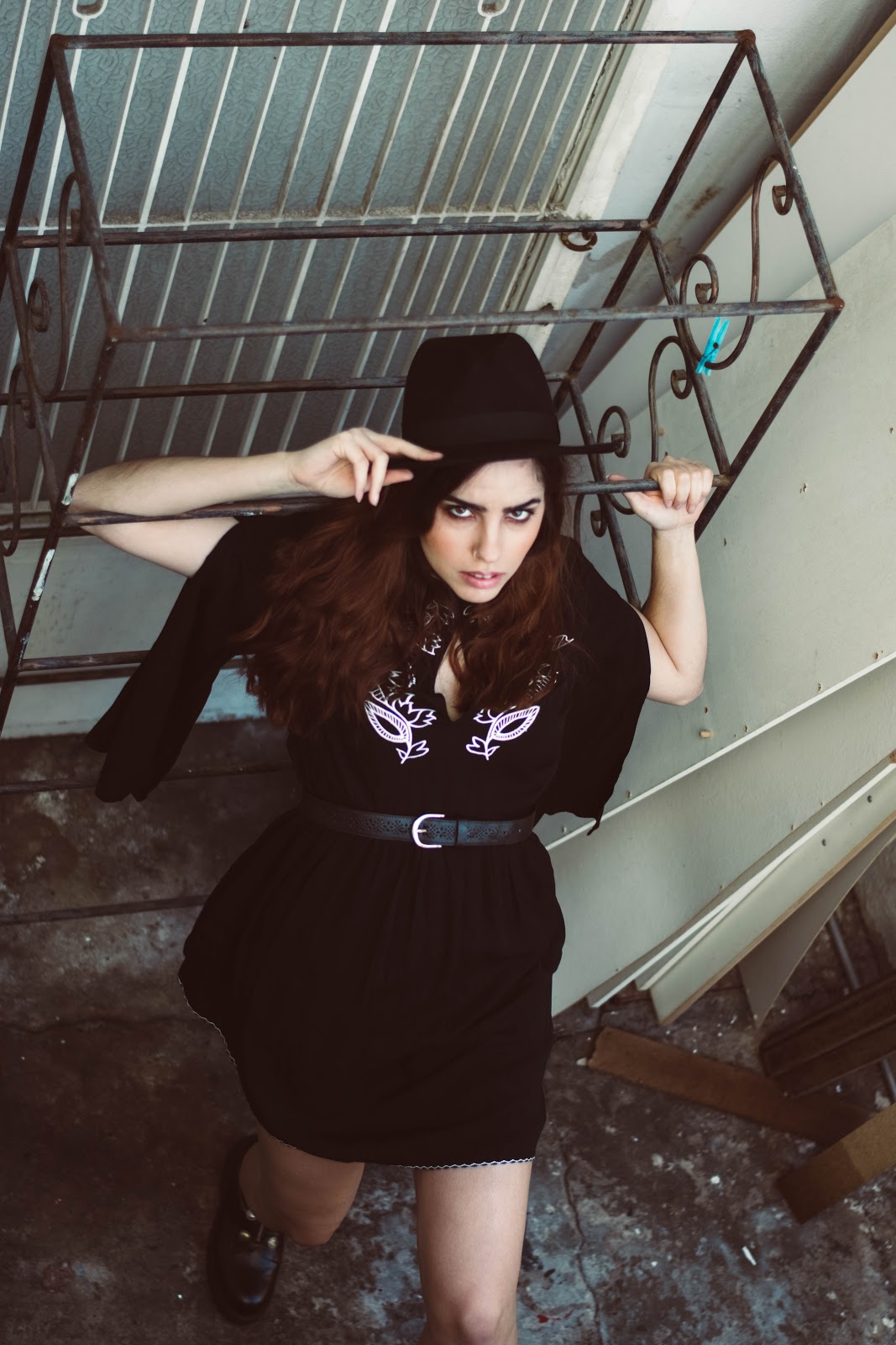 Ένα μαύρο mini φόρεμα σε loose γραμμή με φαρδιά και ανοιχτά μανίκια, μπορεί να αποτελέσει τον καμβά για ένα total black ντύσιμο, και αυτό που το ξεχωρίζει από ένα LBD είναι το κέντημα στο στήθος και το ιδιαίτερο του ντεκολτέ. Για να τονίσουμε τη σιλουέτα και να δώσουμε σχήμα στο φόρεμα, επιλέξαμε μια απλή μαύρη ζώνη που τόνισε την μέση, ενώ ένα πολύ βασικό αξεσουάρ-statement είναι το καπέλο που το μετέτρεψε κάθε άλλο από basic.