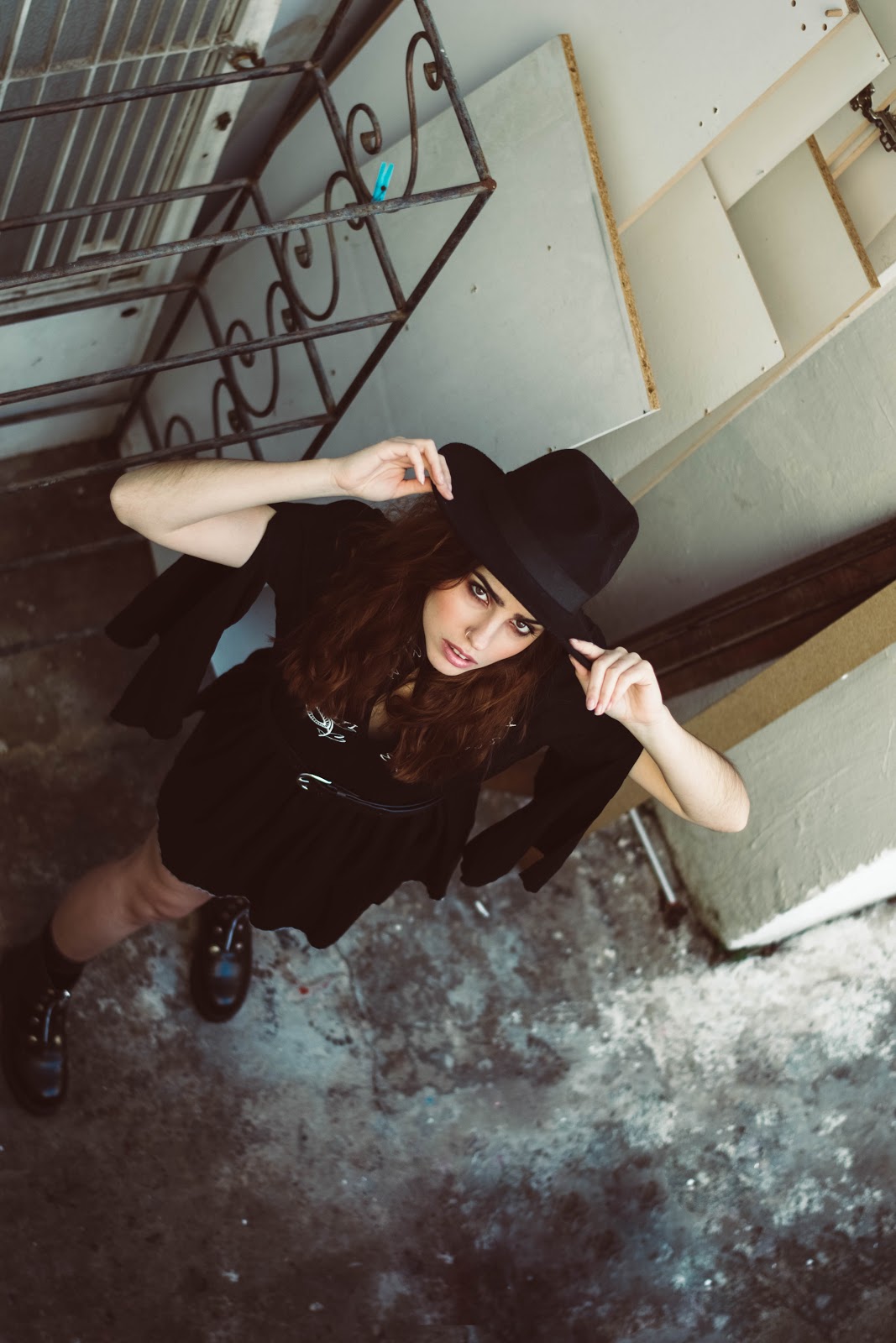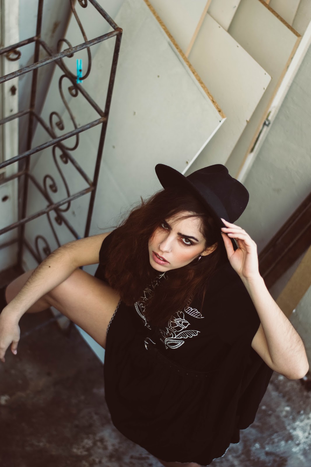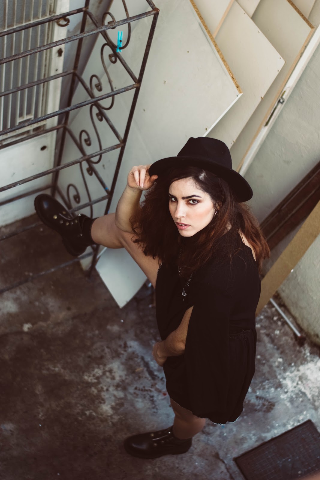 Ένα μαύρο mini φόρεμα σε loose γραμμή με φαρδιά και ανοιχτά μανίκια, μπορεί να αποτελέσει τον καμβά για ένα total black ντύσιμο, και αυτό που το ξεχωρίζει από ένα LBD είναι το κέντημα στο στήθος και το ιδιαίτερο του ντεκολτέ. Για να τονίσουμε τη σιλουέτα και να δώσουμε σχήμα στο φόρεμα, επιλέξαμε μια απλή μαύρη ζώνη που τόνισε την μέση, ενώ ένα πολύ βασικό αξεσουάρ-statement είναι το καπέλο που το μετέτρεψε κάθε άλλο από basic.