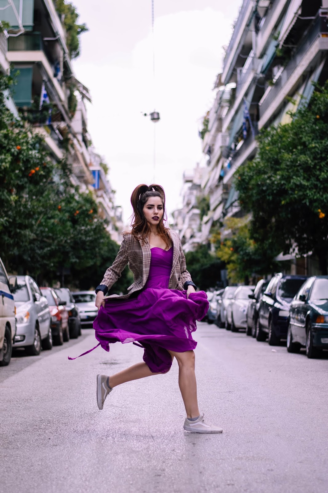 Playful half-bun τα μαλλιά και σκούρα μωβ χείλη,και ένα πιο εκκεντρικό και πιο ιδιαίτερο look για να πάω σε κάποιο event ή κάποια εκδήλωση γενικότερα ολοκληρώθηκε.