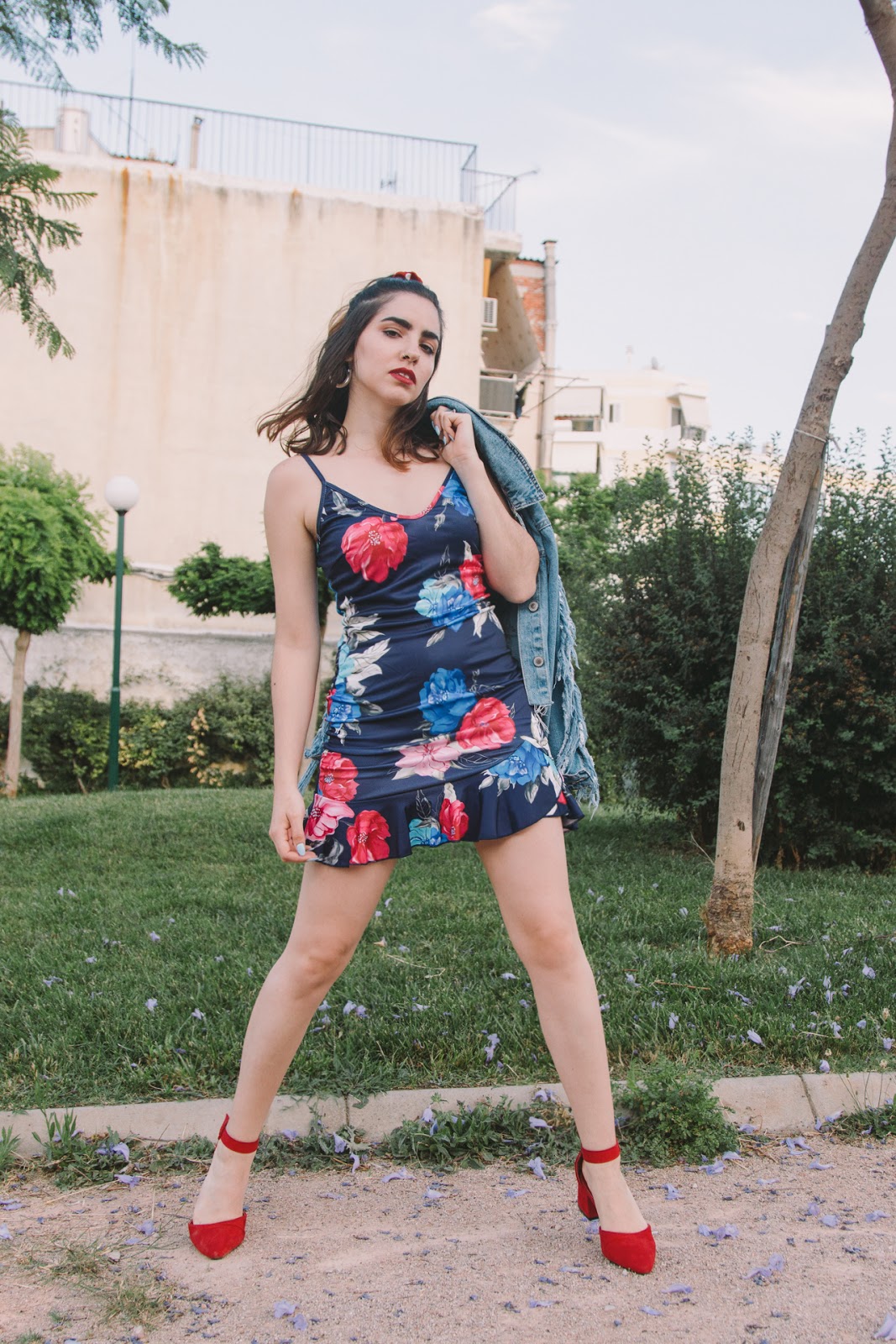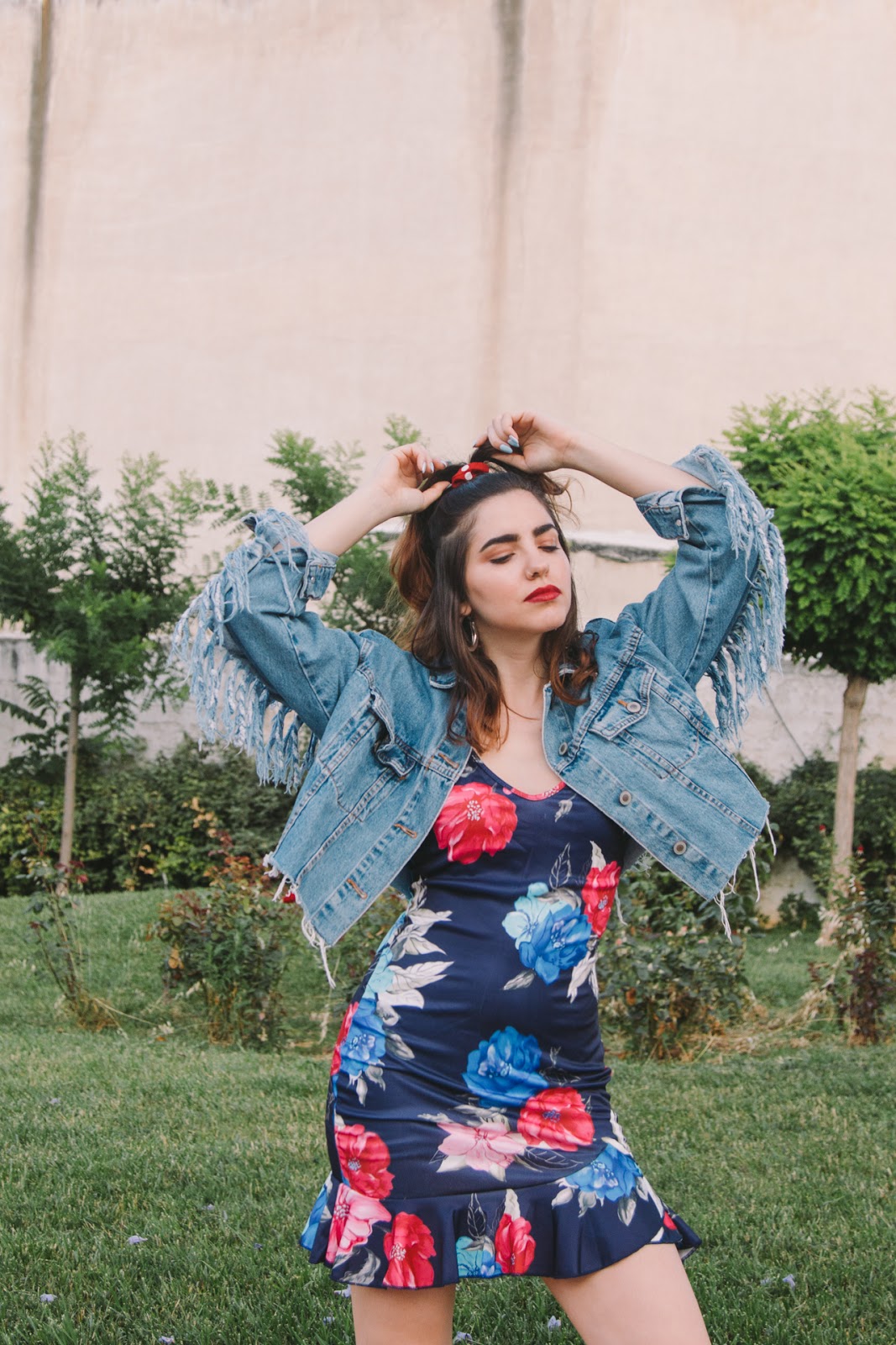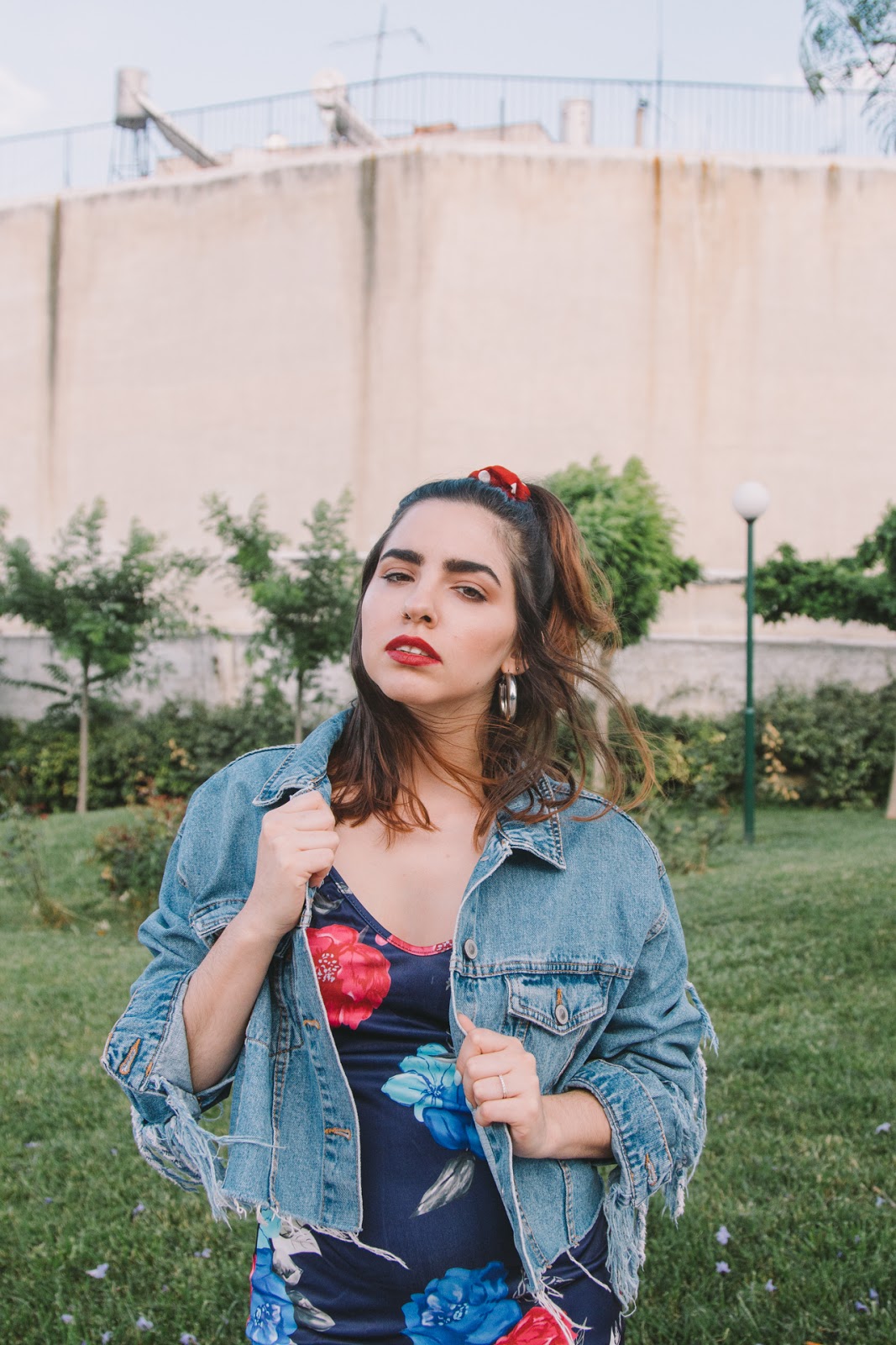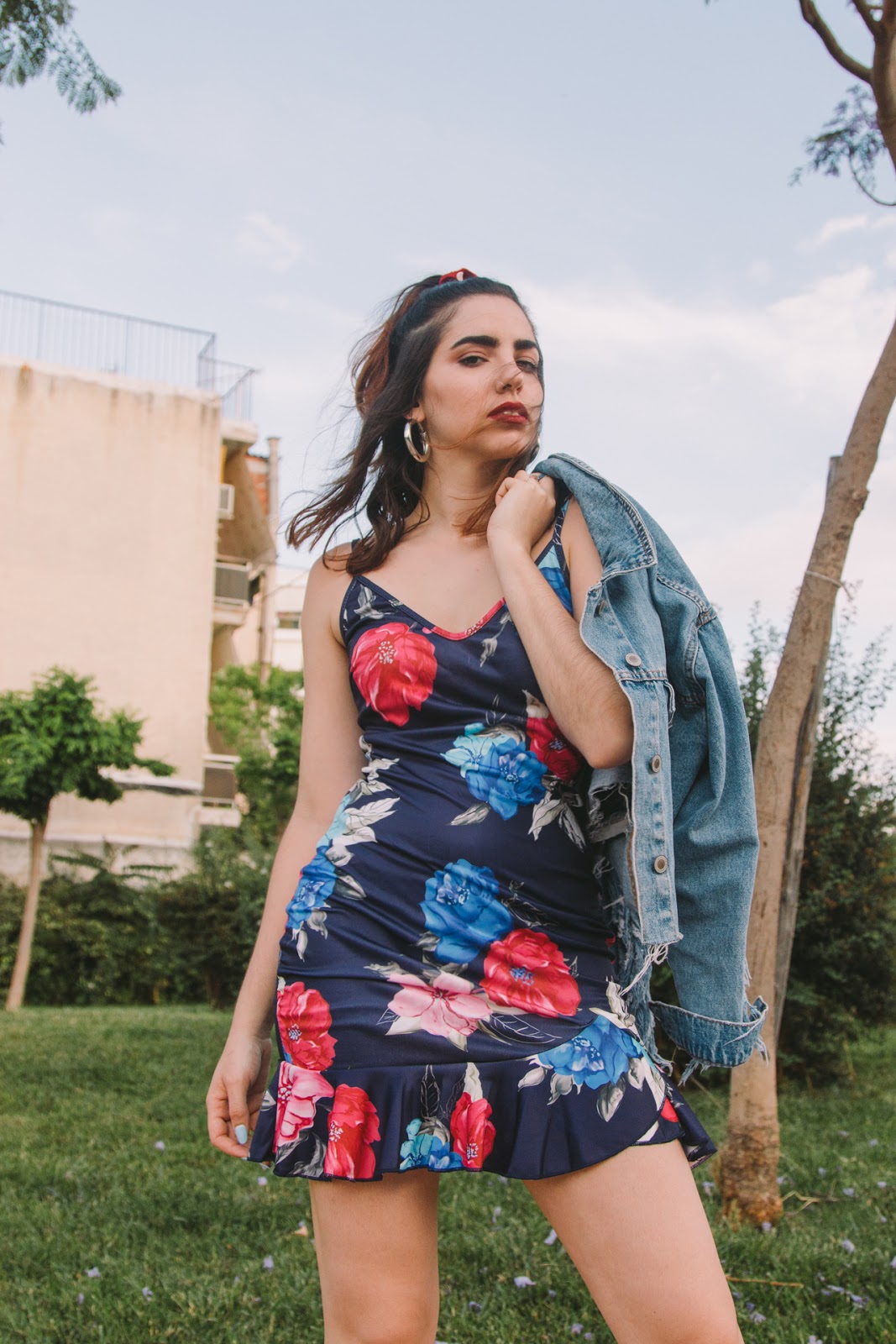 Έτσι και αυτό το look,είναι εμπνευσμένο από outfits της μαμάς που φορούσε πολύ floral,στενά και mini φορεματάκια, με βολάν λεπτομέρειες που αναδείκνυαν την σιλουέτα και ήταν και πρακτικά.