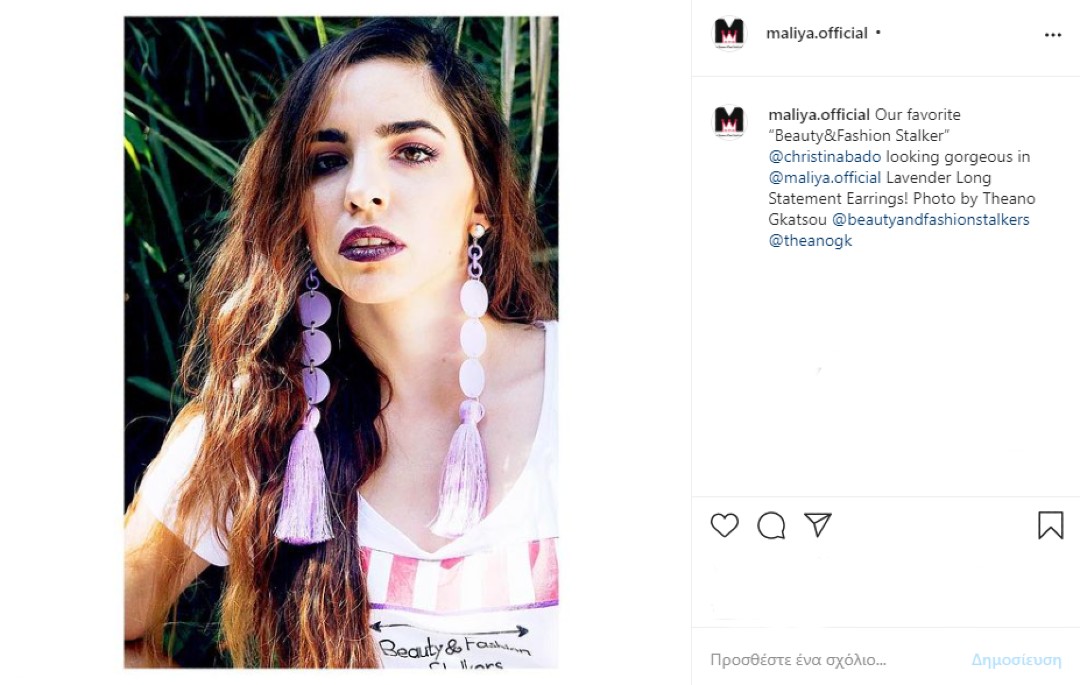 Η Χριστίνα απογείωσε το επετειακό της look για τα 3 χρόνια Stalkers φορώντας μακριά lavender σκουλαρίκια, από την φανταστική Maliya.