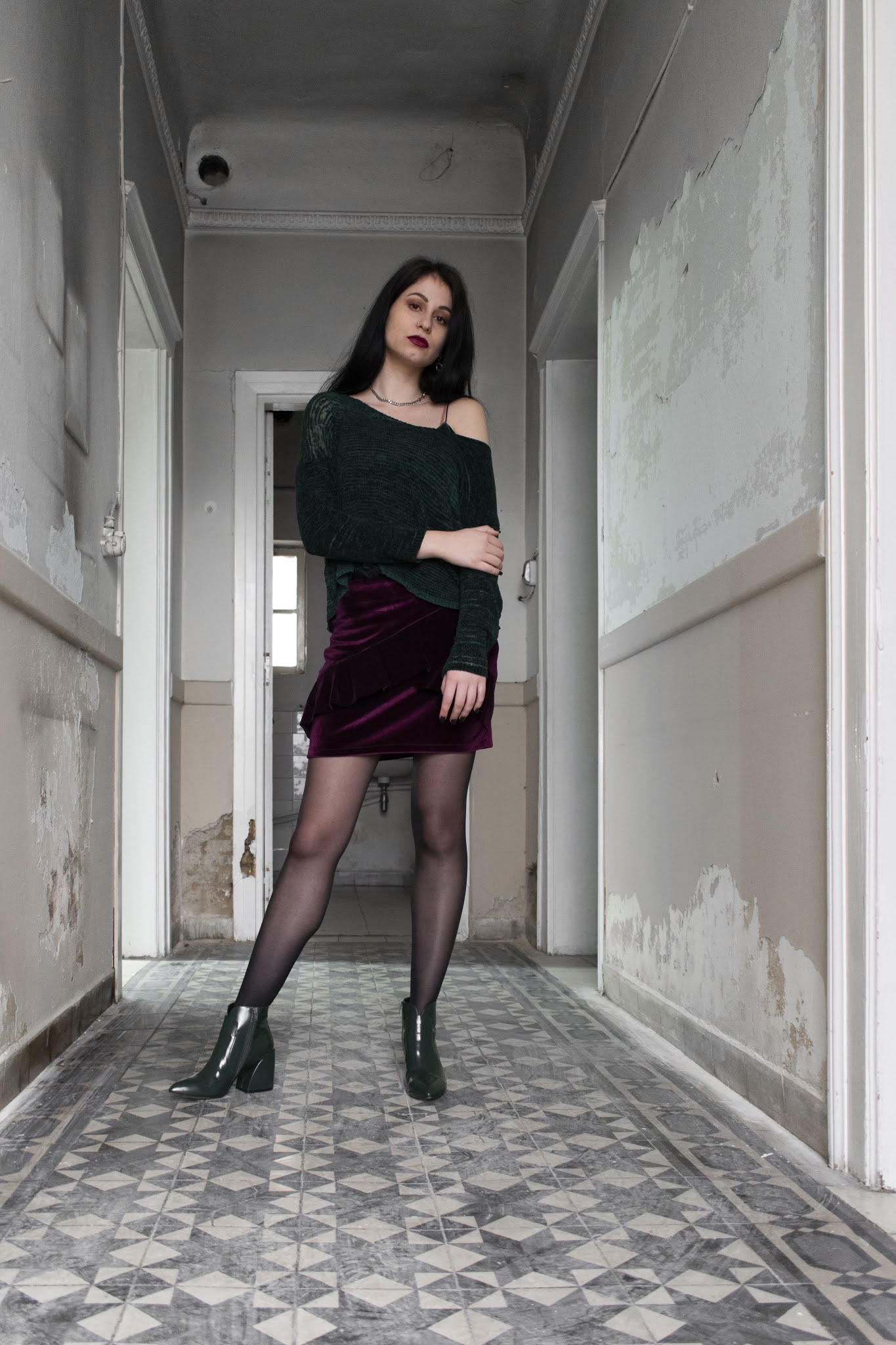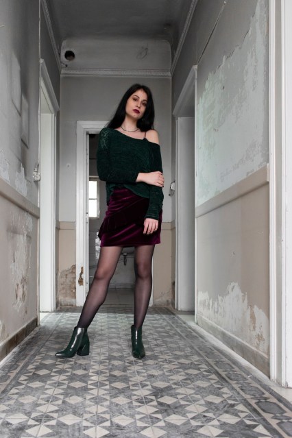 Hello Stalkers, Αποχαιρετούμε σιγά σιγά το 2020 με ό,τι έφερε στην ζωή μας, όμως κάποια αγαπημένα μας outfits συνεχίζουμε να τα αγαπάμε και να τα επιλέγουμε. Ένα από αυτά είναι και τα βελούδινα items της ντουλάπας μας, όπως αυτή η mini φούστα με την ίσια γραμμή και τις λεπτομέρειες από βολάν. Δίνει μια διάθεση πιο formal από μόνη της, για αυτό και την συνδυάζουμε με λίγο πιο loose κομμάτια ώστε να υπάρχει μια ισορροπία, όπως αυτό το λεπτό τύπου πλεκτό top με την φαρδιά λαιμόκοψη που πέφτει στον ώμο και προσθέτει extra στυλ, και τα loose μανίκια. Ένα ζευγάρι ankle boots με ιδιαίτερο 70s τακούνι και ελαφρώς μυτερά, είναι η κατάλληλη επιλογή για να ολοκληρώσουμε αυτό το look, τα οποία έχουν και πολύ κοντινή απόχρωση με το top και δημιουργούν μια συνέχεια. Light μακιγιάζ που βασίζεται στα χείλη και φυσικά μαλλιά και είσαι έτοιμη να πας παντού!