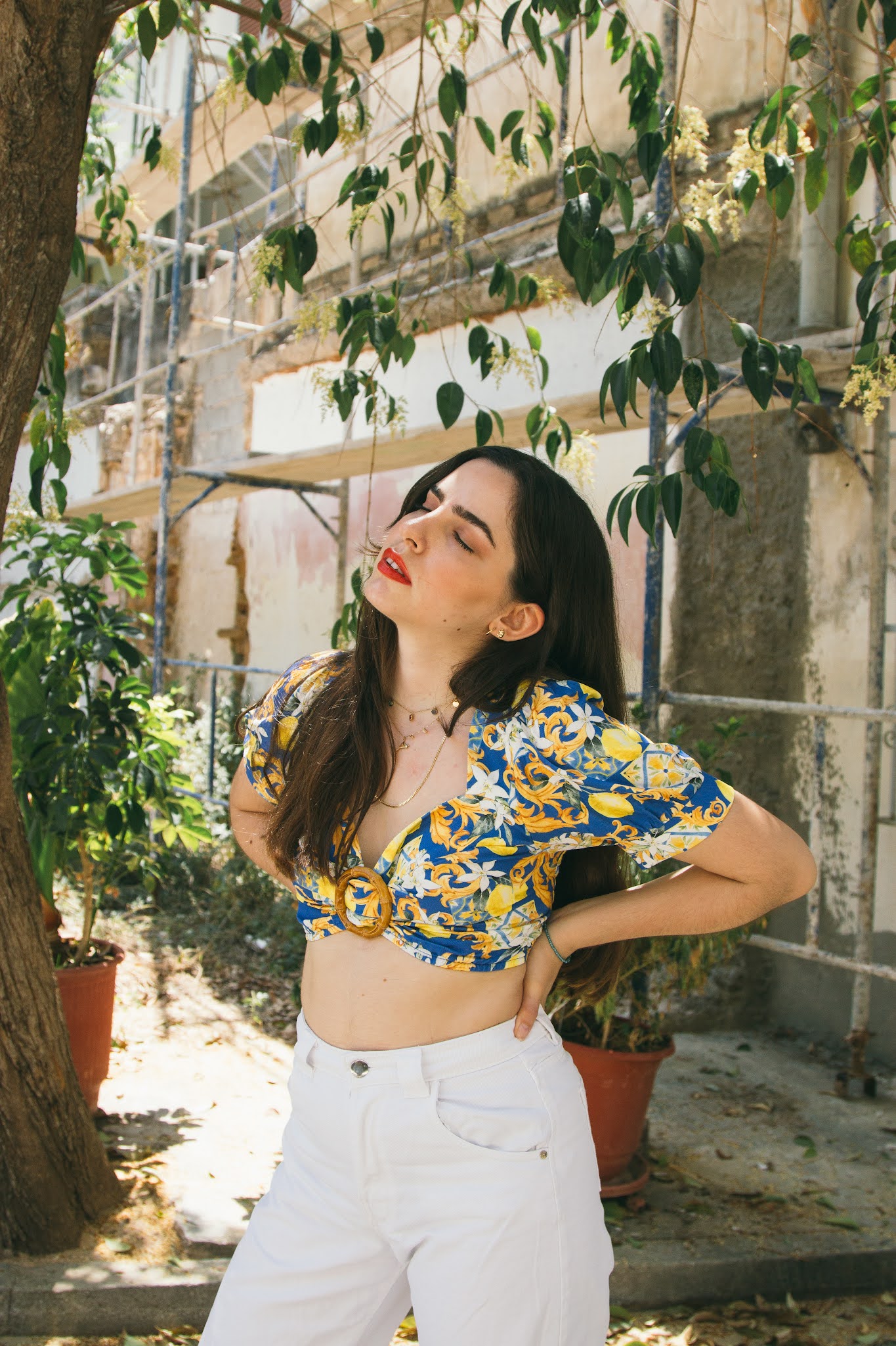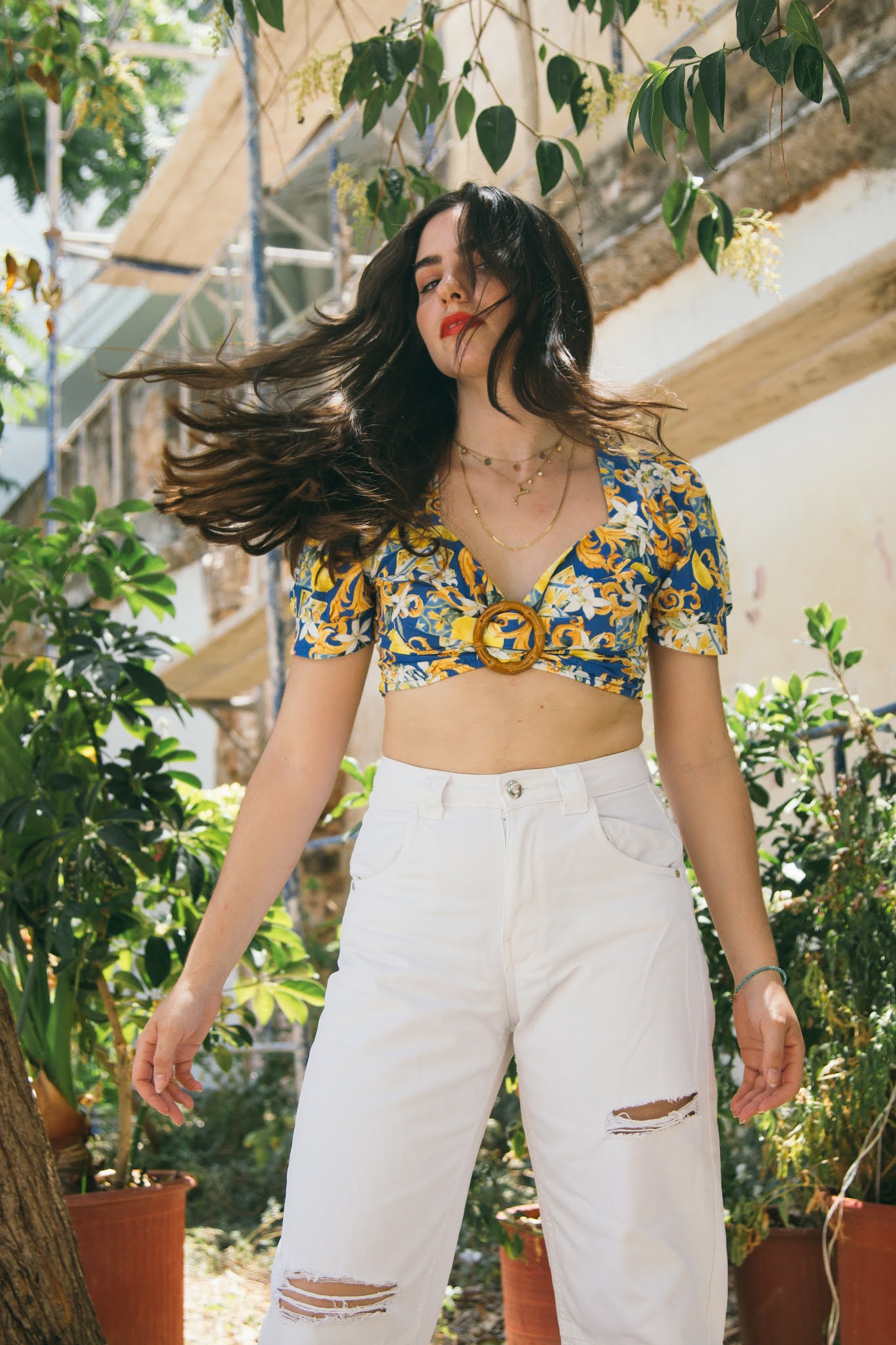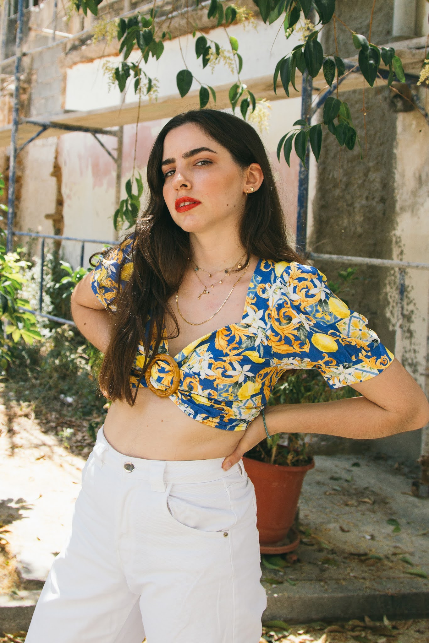Σχετικά με το outfit, αγαπήσαμε το λευκό σε κάθε του εκδοχή, για αυτό και το επιλέξαμε και ως βάση σε αυτό το look. Τα λεμόνια δίνουν την ένταση και το ενδιαφέρον σε αυτό, ειδικά αφού το crop top με την αγκράφα στο στήθος δίνει extra στυλ και summer vibes χωρίς ιδιαίτερο κόπο και styling. Το λευκό ψηλόμεσο slouchy παντελόνι, μπορεί να μην κολακεύει τη σιλουέτα αλλά δίνει attitude, ενώ τα flatforms με τις αγκράφες το απογειώνουν χωρίς να αποχωριζόμαστε την άνεση μας στιγμή. Ένα φωτεινό κόκκινο κραγιόν και διακριτικά χρυσά αξεσουάρ είναι η τελευταία πινελιά, σε ένα look που τολμήσαμε αυτό το καλοκαίρι, για βόλτες από το πρωί μέχρι το βράδυ.