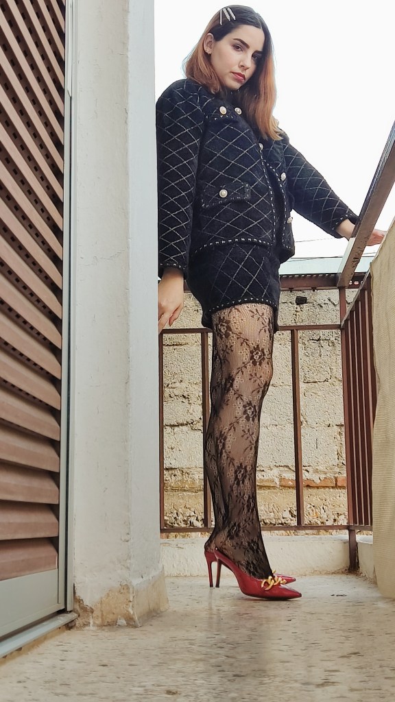 Λεπτομέρειες με πέρλες, ένα κεντητό καλσόν που αναδεικνύει την σιλουέτα αλλά και ένα ζευγάρι κόκκινα mules, ελαφρώς μυτερά με μεταλλικές λεπτομέρειες είναι αυτά που απογείωσαν αυτό το outfit και έγινε αυτόματα ένα από τα αγαπημένα μας.