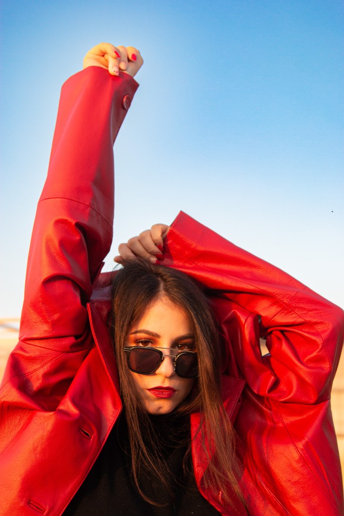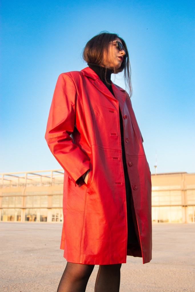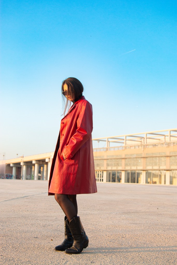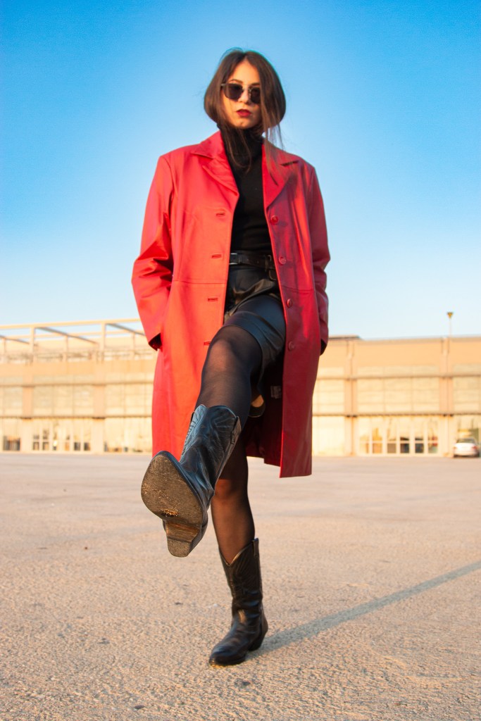 Αυτό ακριβώς έχει συμβεί και σε αυτό το outfit post, αφού 2 κομμάτια από αυτά που φοράει η Χριστίνα είναι vintage. Ξεκινώντας από που είναι πιο φανερό, η δερμάτινη oversized καπαρντίνα της, που είναι από την ντουλάπα της μαμάς της, είναι ένα super κομμάτι, αφού με την ίσια γραμμή της, κάνει την σιλουέτα της Χριστίνας πιο γεωμετρική και επιβλητική. Για να την φέρει στο σήμερα τη συνδύασε με ένα basic μαύρο ζιβάγκο top, και μια βερμούδα τύπου δερματίνη, για να απογειώσει το λίγο πιο όχι τόσο feminine στυλ της, ενώ τετραγωνισμένα γυαλιά ηλίου σε μαύρη απόχρωση είναι αυτά που έδεσαν το outfit.