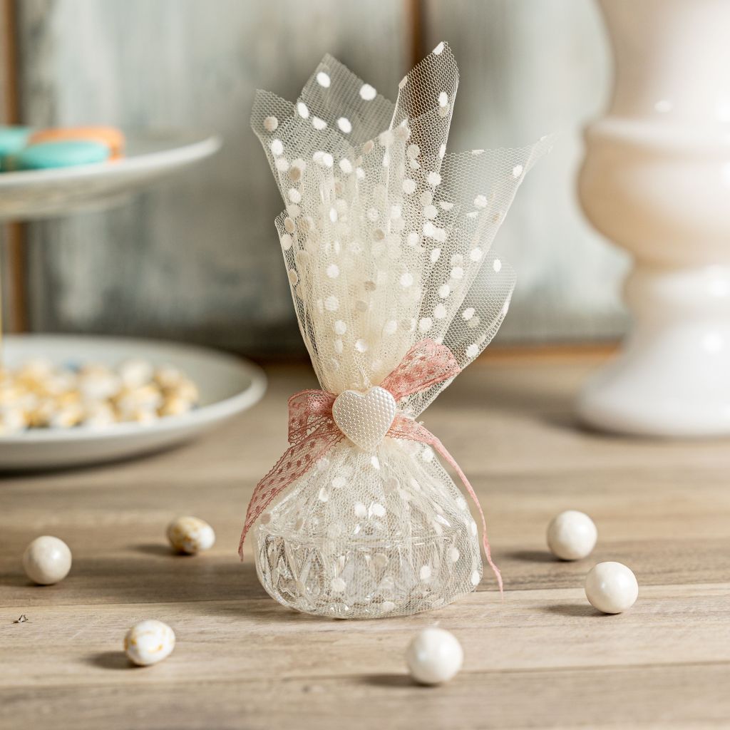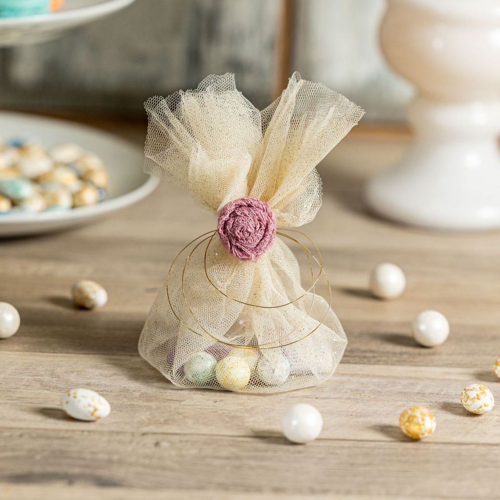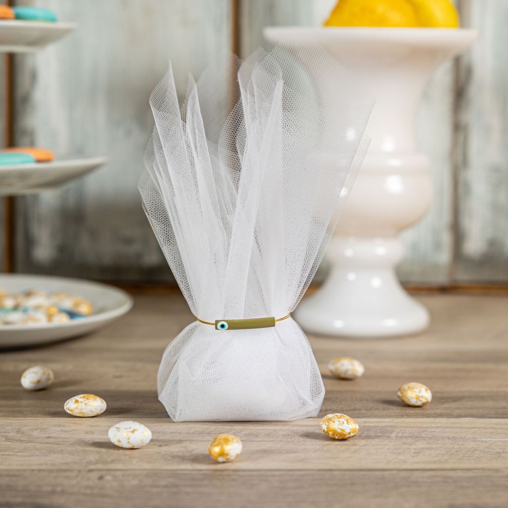 6. Μπομπονιέρα Τούλινη με Chic λεπτομέρειες. Για τους λάτρεις του διαχρονικού οι τούλινες μπομπονιέρες γάμου είναι μια must επιλογή κάθε χρόνο. Φέτος, ωστόσο, βλέπουμε η κομψότητα να επικρατεί σε μικρές λεπτομέρειες όπως elegant διακοσμητικά, λεπτές και αριστοκρατικές κορδέλες ή minimal στοιχεία με πρωτότυπα κορδόνια, τα οποία δίνουν στην άλλοτε απλοϊκή τούλινη μπομπονιέρα μια εντυπωσιακή εμφάνιση.