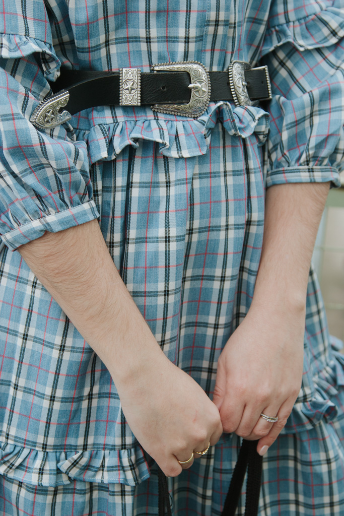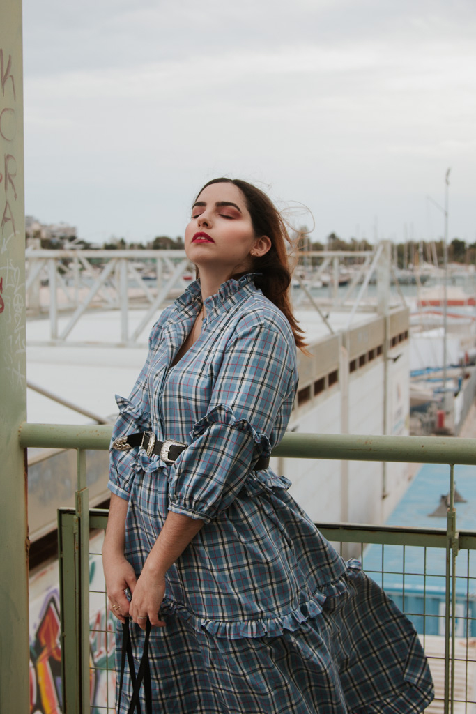 Σε αυτό το outfit post, επιλέξαμε ένα φόρεμα που έχει το αγαπημένο μας καρό print και λεπτομέρειες με βολάν στη φούστα και τα μανίκια. Δημιουργεί αυτόματα ένα cottage girl attitude, και είναι από τα πιο άνετα looks που επιλέγουμε για την καθημερινότητα μας. Συνδυάσαμε μια ζώνη με διπλές αγκράφες η οποία δίνει λάμψη αλλά και τονίζει την σιλουέτα η οποία χάνεται μέσα στην ίσια γραμμή του φορέματος.