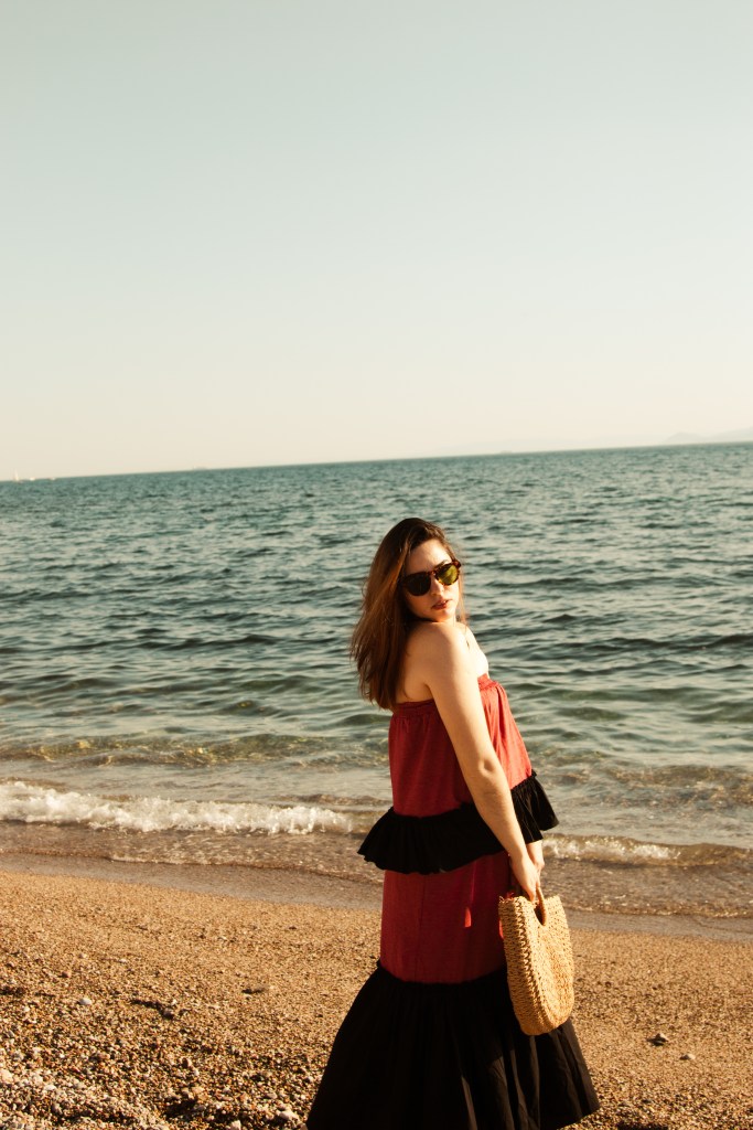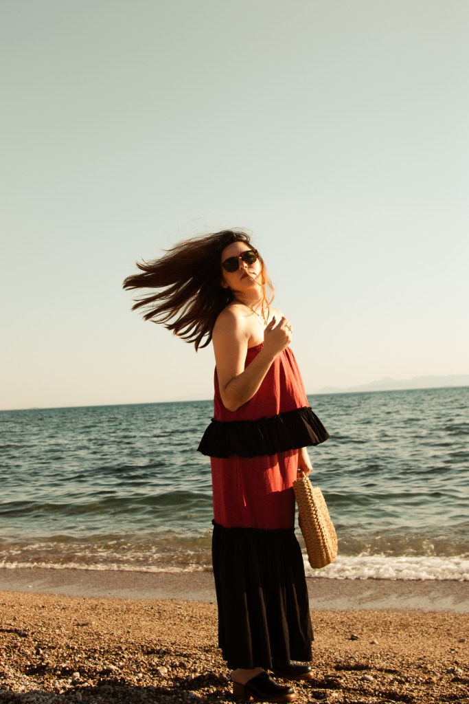 Πιο συγκεκριμένα, έχουμε συνδυάσει δύο φούστες από το αγαπημένο μας brand La Trela, μια mini και μια maxi, και έχουμε δημιουργήσει overlays με το βολάν που έχουν στο τελείωμα. Έτσι, μιας και έχουν ανάλαφρη γραμμή, είμαστε άνετες, ακόμα και τις μέρες που νιώθουμε super πρησμένες, αλλά και stylish αφού έχει κίνηση σε κάθε μας βήμα. Η strapless εφαρμογή της mini φούστας είναι αρκετή ώστε να παραμένει σταθερή χωρίς να μας σφίγγει.