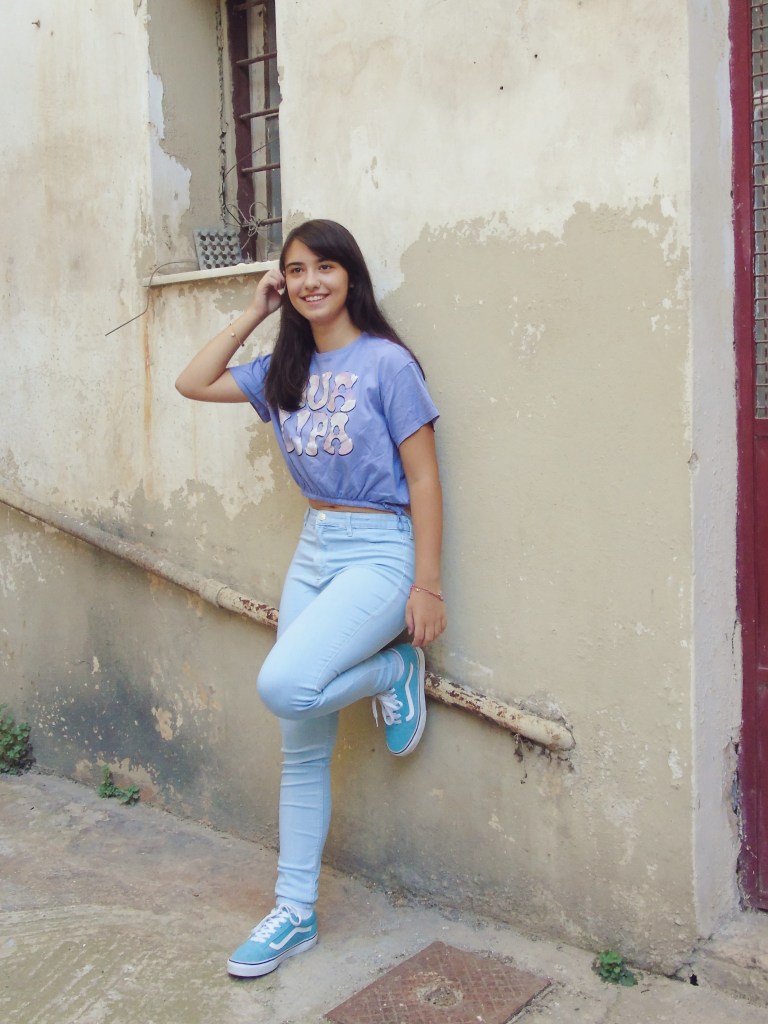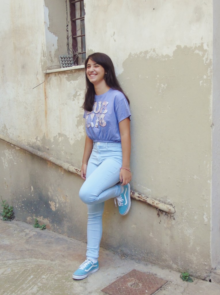 Ένα τέτοιο άγχος όμως έχουν και οι έφηβοι, και κυρίως τα κορίτσια αφού αναρωτιούνται από τώρα τι θα φορέσουν τη πρώτη μέρα στο σχολείο. Την ίδια απορία είχε και η μικρή Κλεοπάτρα, η οποία σε συνεννόηση με εμάς, διάλεξε τρία πιθανά outfits που θα επέλεγε να φορέσει τη μέρα του αγιασμού.