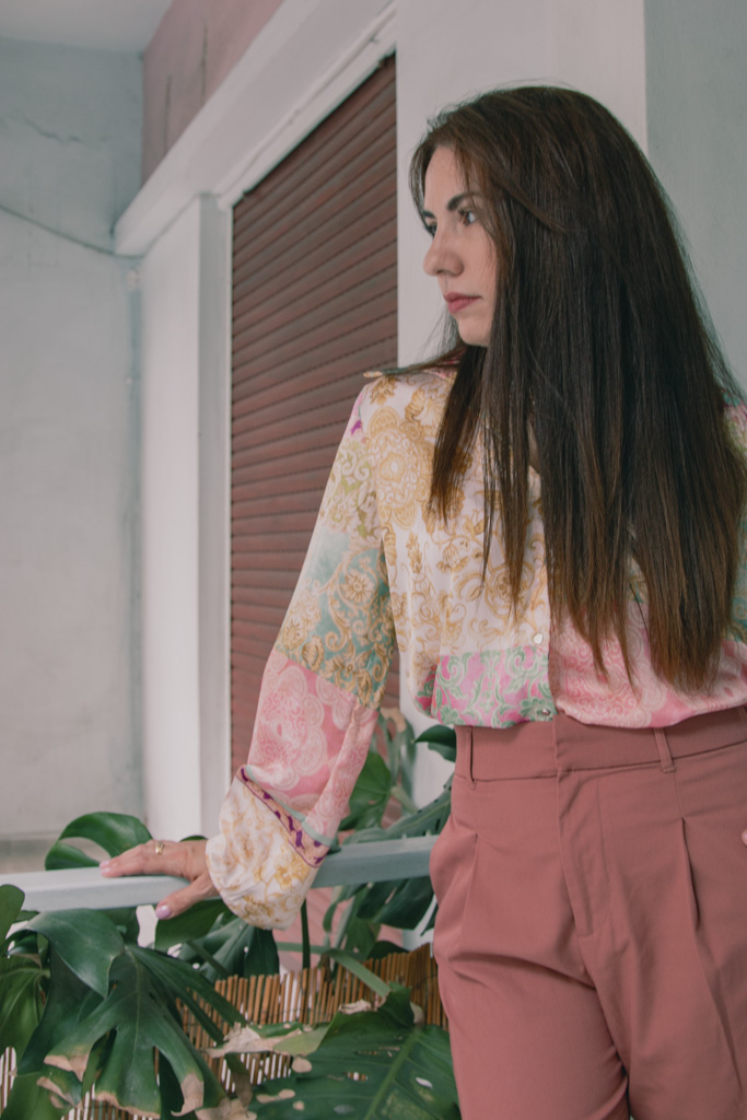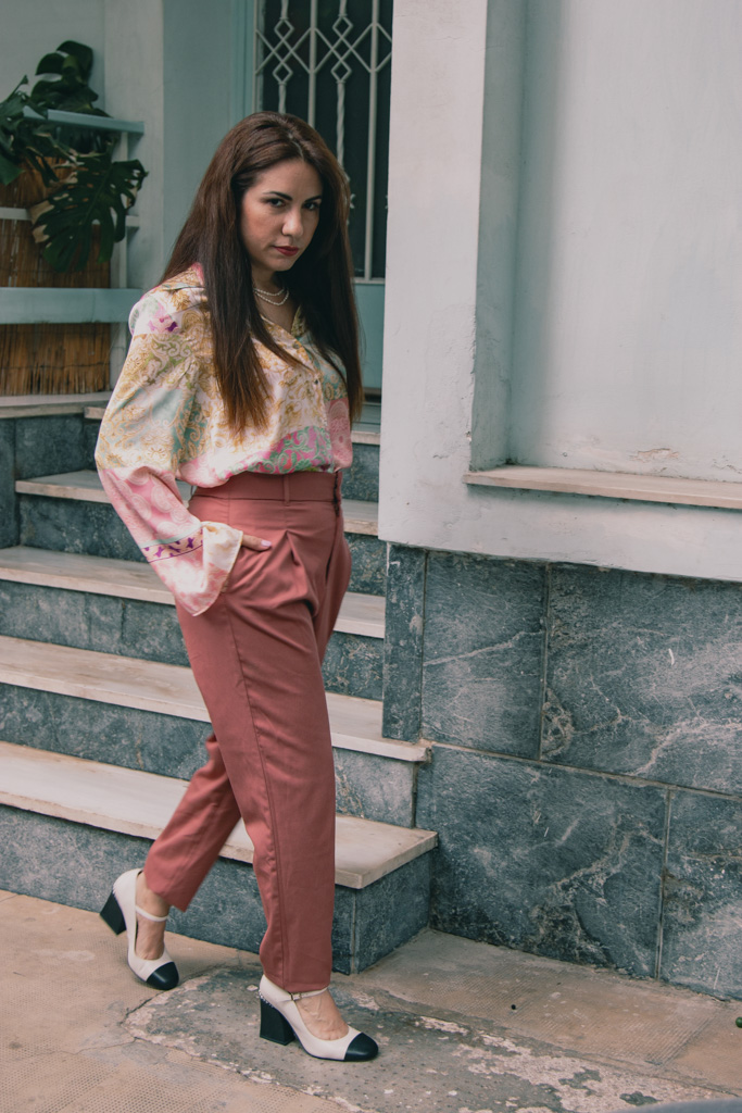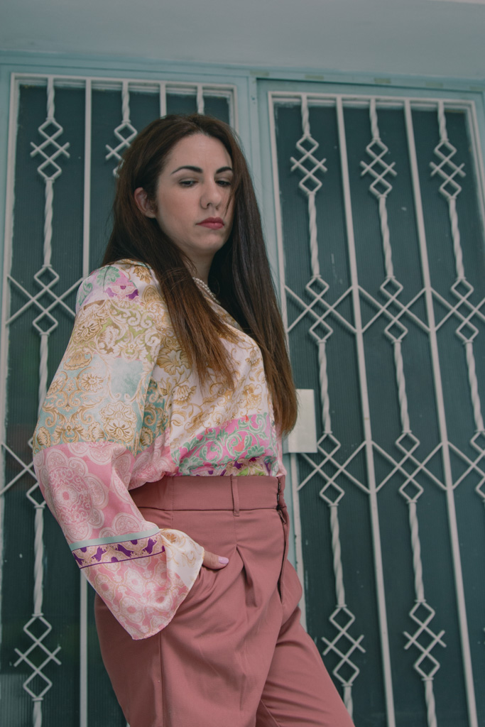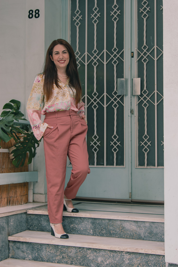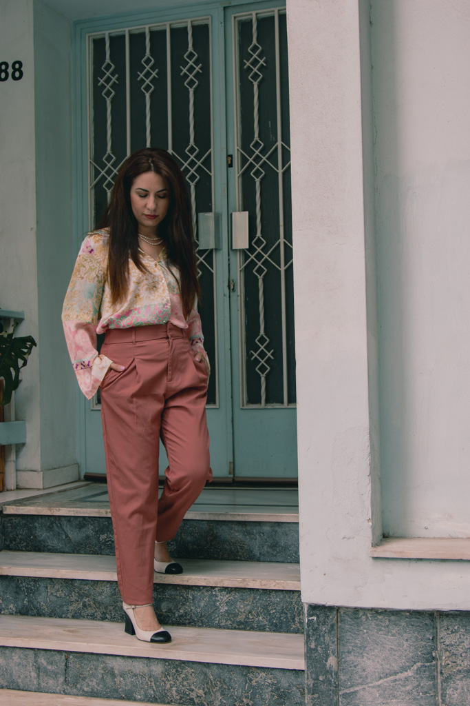 Αυτό το outfit της Mama Stalker μου έβγαλε ανάμεικτα συναισθήματα και μου έφερε στην επιφάνεια την ανάγκη να αναπτύξω ένα θέμα το οποίο με απασχολεί κατά καιρούς. Μπορεί όλα τα ρούχα να είναι σύγχρονα- πέρα από τις πέρλες στο λαιμό που είναι vintage- ωστόσο μου βγάζουν ένα vibe παλαιότερων χρόνων. Λίγο το παντελόνι τύπου tailor που θυμίζει αντρικό, λίγο το print από το πουκάμισο, οι γόβες με τις πέρλες ή ακόμα και το vintage background είναι αρκετά για να μου δώσουν αυτό το aesthetic.