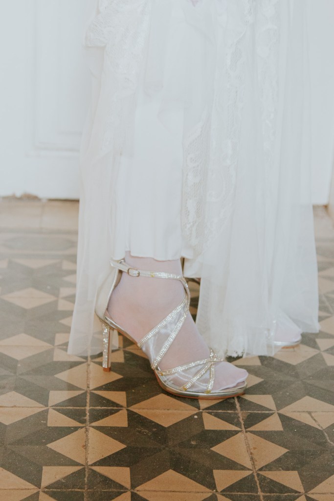 Σχετικά με τα παπούτσια, να θυμάσαι πως πρέπει να είναι μαλακά, άνετα και να μπορείς να κινηθείς σε αυτά, άρα αποφεύγεις τα πολλά λουριά που θα σε σφίγγουν μετά από κάποιες ώρες, ενώ προτείνουμε να είναι σχέδιο που να μπορείς να το φορέσεις ξανά. Δεν χρειάζεται να είναι νυφικά παπούτσια απαραίτητα- μπορούν να είναι ένα βραδινό ζευγάρι γόβες ή πέδιλα σε λευκό, μπεζ, ροζ ή και μεταλλικούς τόνους, που θα αναδεικνύουν εσένα και το νυφικό σου.