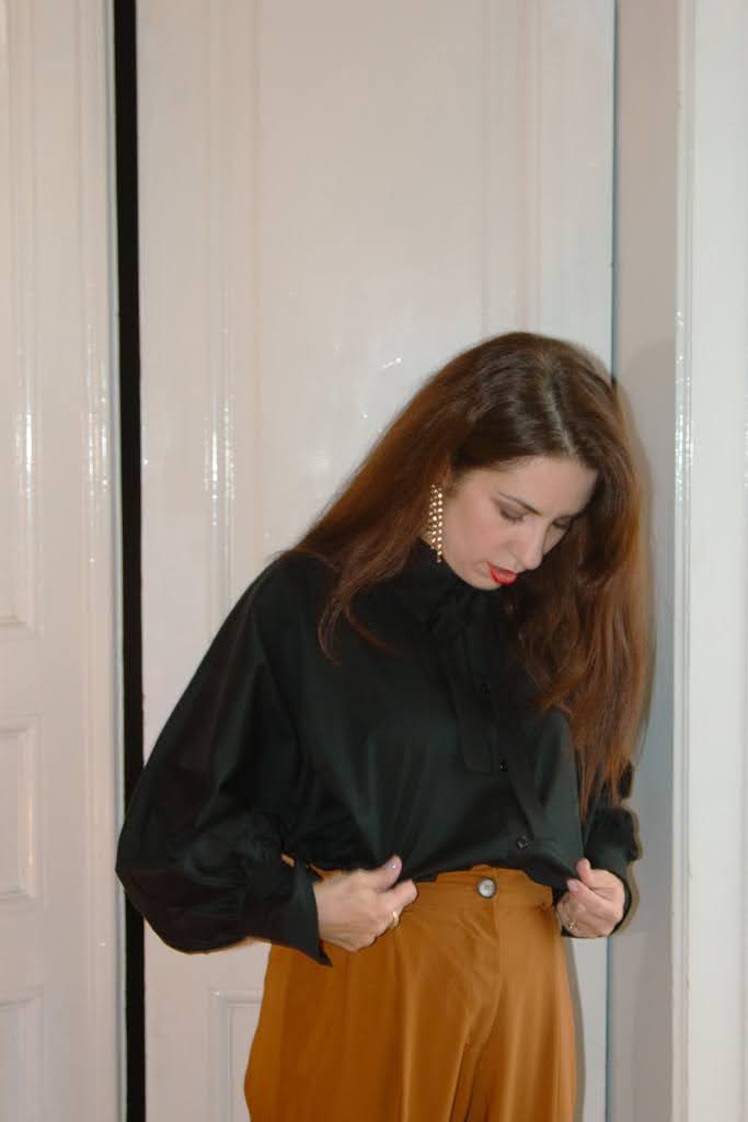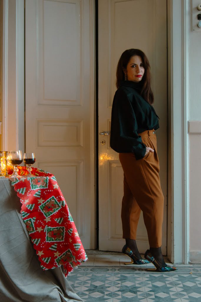 Ολοκληρώνουμε τα γιορτινά μας outfits με τη Mama Stalker, η οποία δεν αποχωρίζεται την άνεση της αλλά και την κομψότητα στιγμή. Σε αυτό το look, φόρεσε ένα oversized παντελόνι σε καφέ χρώμα, με ένα πουκάμισο με φουσκωτά μανίκια και δετό φιόγκο στον λαιμό, το οποίο σε συνδυασμό με την γραμμή του παντελονιού, φέρνει ισορροπία και συμμετρία στους όγκους στο συνολικό outfit.