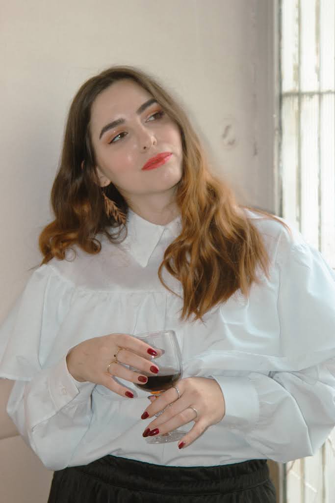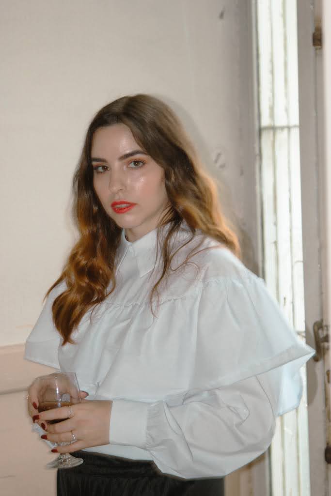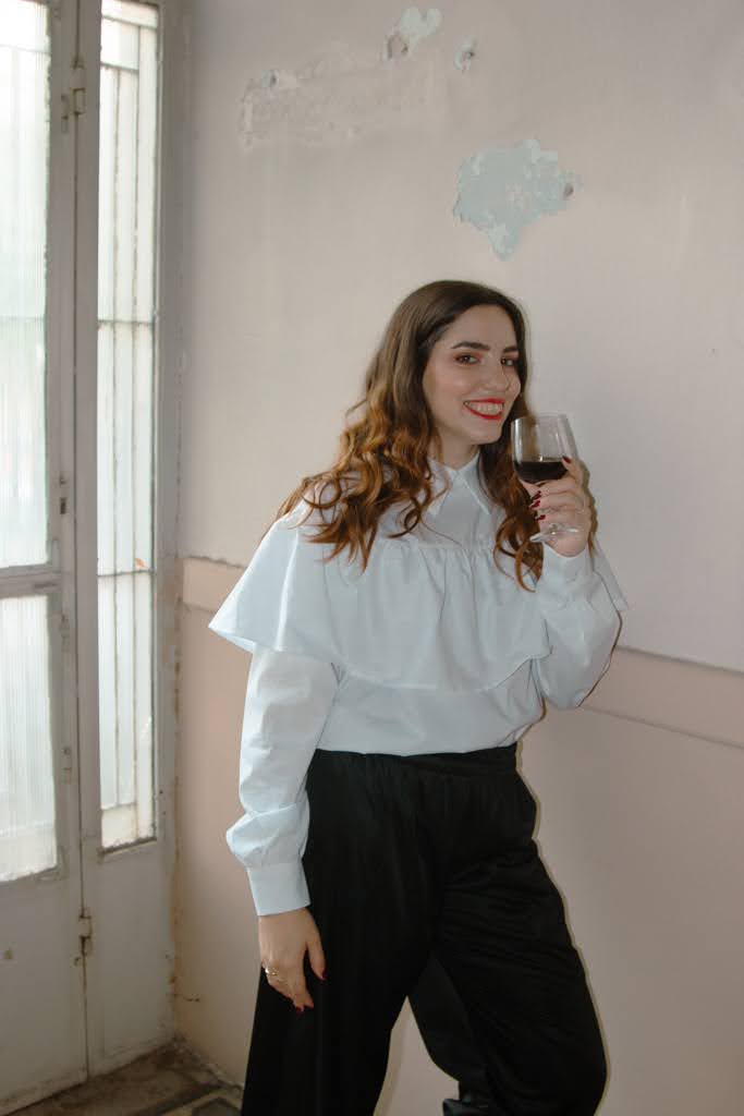Σε αυτό το outfit post, είναι χαρακτηριστικό πως υπάρχουν edgy στοιχεία που θα έκανε αδιαμφισβήτητα η Χριστίνα, σε ένα outfit που αποτελείται από απλά κομμάτια. Επιλέγοντας ένα παντελόνι τύπου φόρμα με glossy υφή και κωνικά μπατζάκια, το συνδύασε με ένα λευκό πουκάμισο με ένα overlay από βολάν, το οποίο δίνει τον όγκο της υπερβολής που χρειάζεται αυτό το outfit.