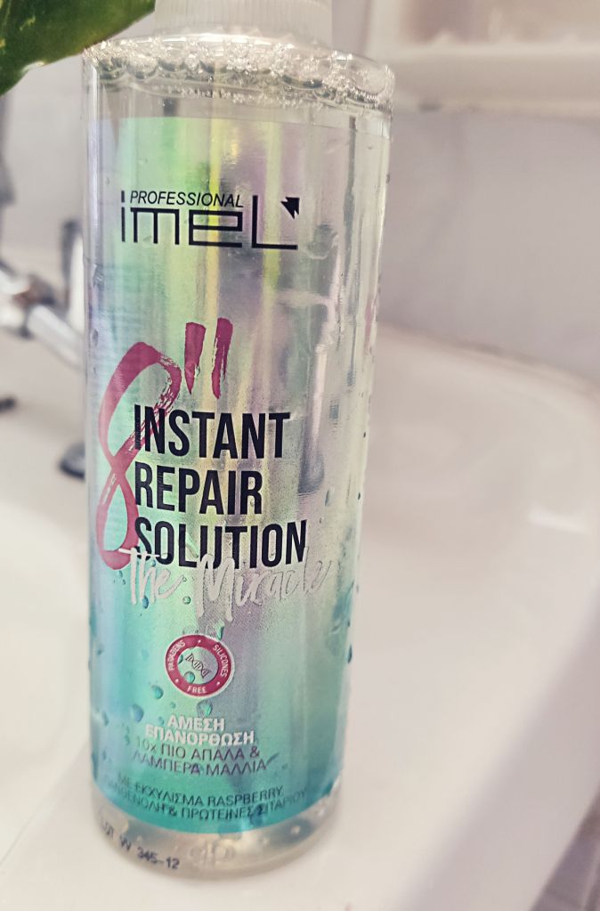 Το δεύτερο βήμα συμπεριλαμβάνει το Instant Repair Solution, το οποίο είναι ένα προϊόν ελαφρύ αλλά και ενυδατικό με εκχύλισμα Raspberry το οποίο προσφέρει επανόρθωση και λάμψη σε μόλις 8 δευτερόλεπτα. Εμείς το εφαρμόζουμε κυρίως από τη μέση και κάτω για να μην επιβαρύνουμε τη ρίζα αλλά και γιατί τη μεγαλύτερη φθορά την παρουσιάζουν προς τις άκρες που επιμένουμε και για το styling. Δε ξεχνάμε πως θέλουν σχολαστικό ξέβγαλμα μετά.