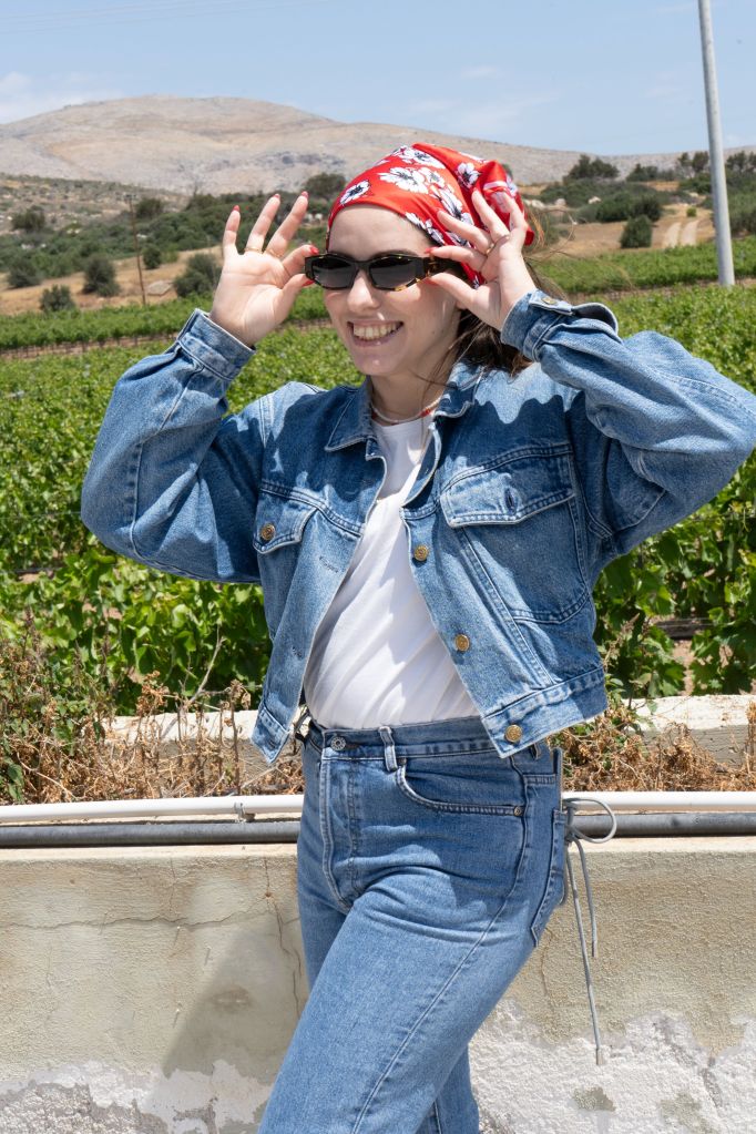 Ακριβώς επειδή εκείνη τη μέρα παρέμενα off camera φόρεσα ένα άνετο outfit βασισμένο στο total denim, ενώ τα στοιχεία που έδωσαν extra πινελιά ήταν η bandana που κράτησε τα μαλλιά μου σταθερά παρά τον αέρα, αλλά και τα αγαπημένα μου γυαλιά από World of Vision.