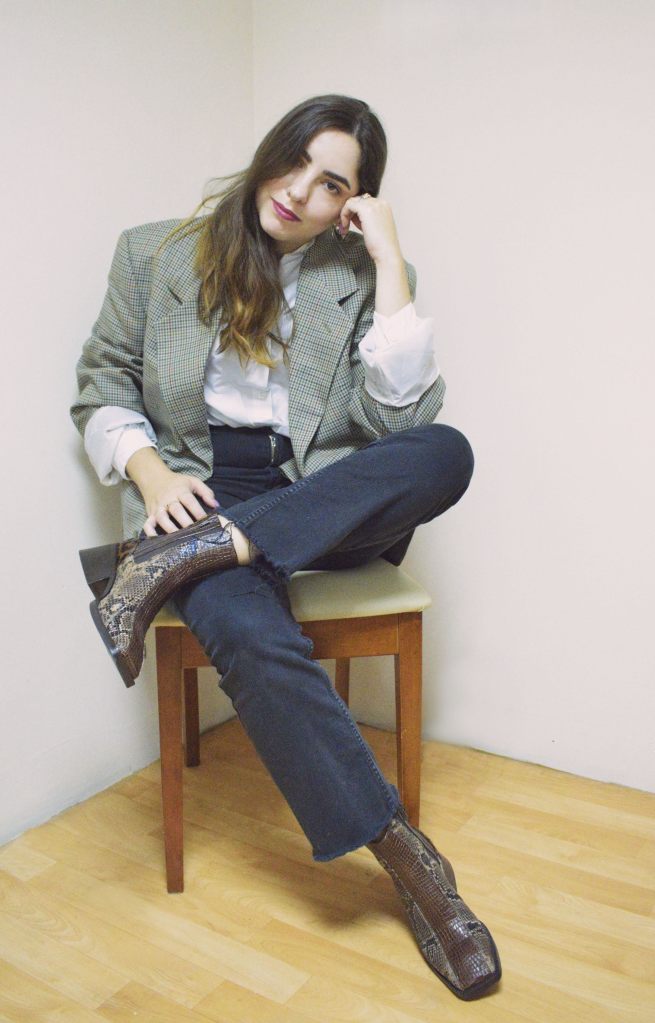 2. Urban in booties. Η Χριστίνα κλασσικά το προτείνει με λίγο πιο τολμηρό τρόπο, φορώντας το σακάκι με ένα flared μαύρο παντελόνι και ένα πουκάμισο με ελαφρώς φουσκωτά μανίκια, ενώ τα μποτάκια με το mixed animal print δίνουν extra attitude και αντίθεση σε συνδυασμό με το καρό.
