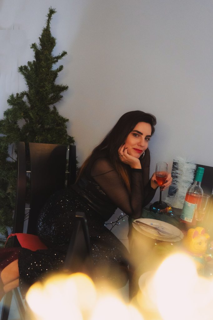 Έτσι λοιπόν, ένα τέτοιο outfit προτείνει και η Χριστίνα, αφού συνδύασε ένα παντελόνι ψηλόμεσο με παγιέτες με ένα top με μεταλλική σύνθεση που λάμπει σε κάθε της κίνηση. Επειδή μένει αρκετή επιφάνεια «γυμνή» και μπορεί να νιώθεις πολύ καλοκαιρινή, προτείνει μια μαύρη διαφάνεια με μακριά μανίκια, ενώ για την απόλυτη λάμψη προτείνει γόβες με strass και τετράγωνο τακούνι που θυμίζουν τόσο πολύ disco. Το κόκκινο χρώμα τους ταίριαξε με το κόκκινο κραγιόν της και είναι σίγουρο πως έτσι θα πάει σε κάθε γιορτινή εμφάνιση ό,τι ώρα κι αν είναι.